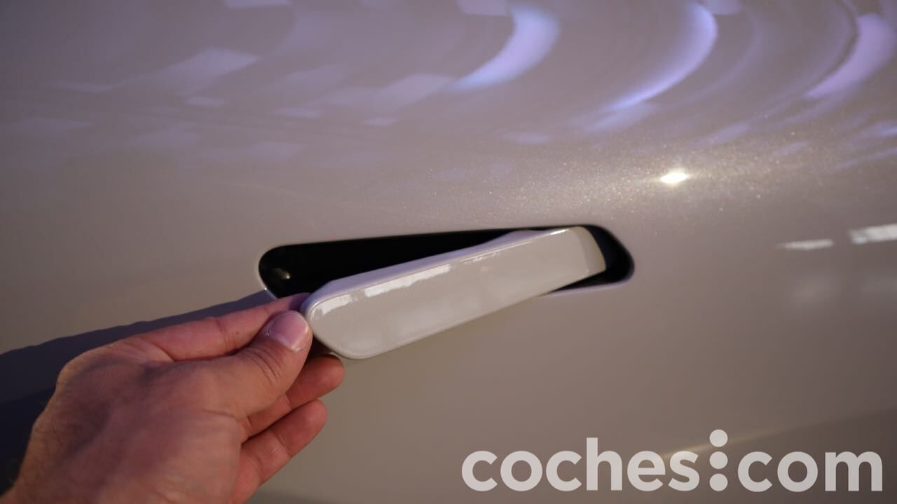 La carrocería parece estar sustentada toda ella en una base en color negro y acero. Y vemos formas muy fluidas, apoyadas por unos tiradores enrasados, que debes bascular para abrirse manualmente. La silueta cae hacia la zaga, donde encontramos unas luces que cruzan el maletero y caen hacia los laterales.
