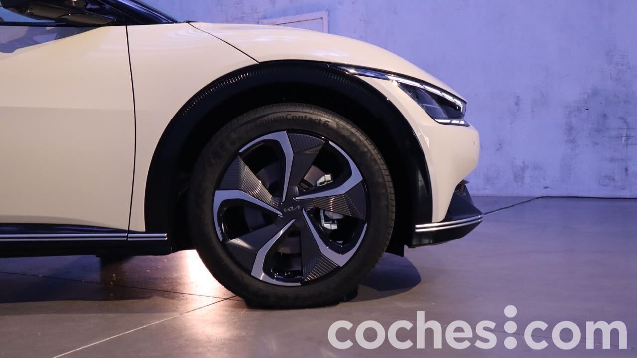 Podríamos pensar que Kia vendría a esta puesta de largo con una variante muy completa. Pero no. Era un modelo preserie, recién llegado de Alemania y con la terminación más sencilla, que en España se denomina EV6, a secas. Sólo las llantas eran de 20 pulgadas, correspondientes en nuestro mercado al acabado GT-Line intermedio (de serie de 19, que no están mal).
