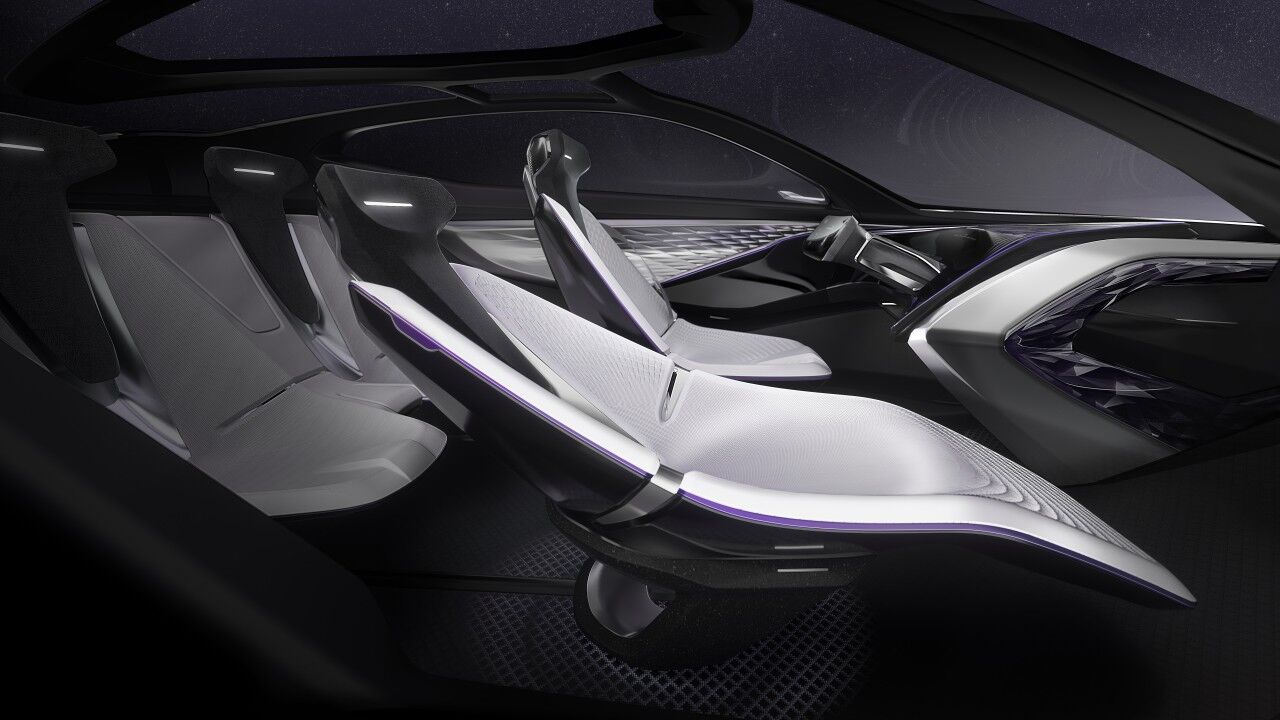 Los asientos delanteros del automóvil están hechos de materiales flexibles, que se pueden configurar para una posición de conducción vertical o en una posición relajada similar a los asientos de avión de primera clase y clase ejecutiva. Cuando se activa el modo de conducción autónoma, los asientos delanteros se reclinan a medida que el volante se retrae.