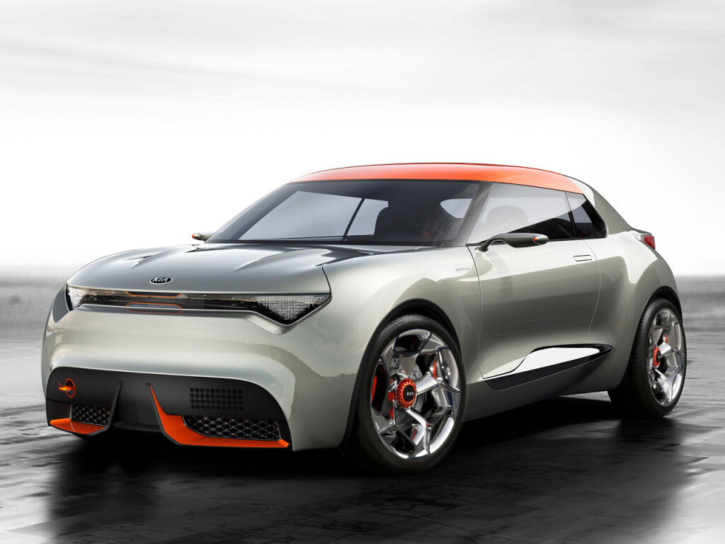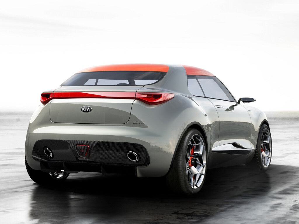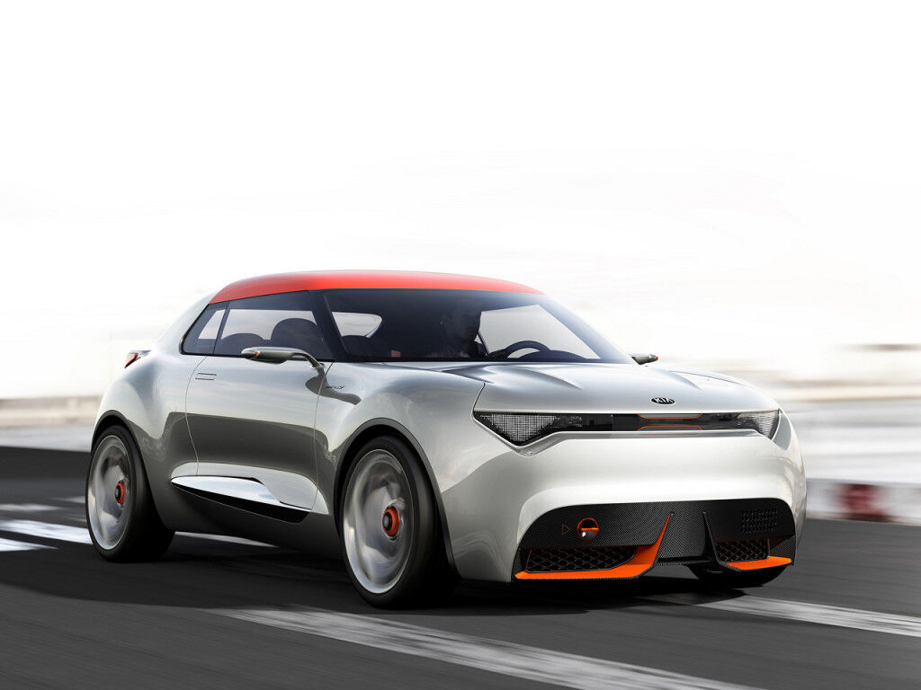 Este hatchback tipo cupé, muy bajo pero musculoso, muestra las intenciones de futuro de Kia en el segmento de los urbanos. Sigue (como tantos otros), los pasos iniciados por el Nissan Juke, y tiene tanta potencia visual como el Nissan... pero con una línea si cabe más deportiva. Sus intenciones dinámicas empiezan en el frontal, caracterizado por un spoiler aerodinámico, paneles de fibra de carbono y unos pequeños faros delanteros compuestos de más de 850 pequeños LED. La idea es que estos LED programables puedan usarse como luces de día, luz de carretera e incluso con configuración de competición.