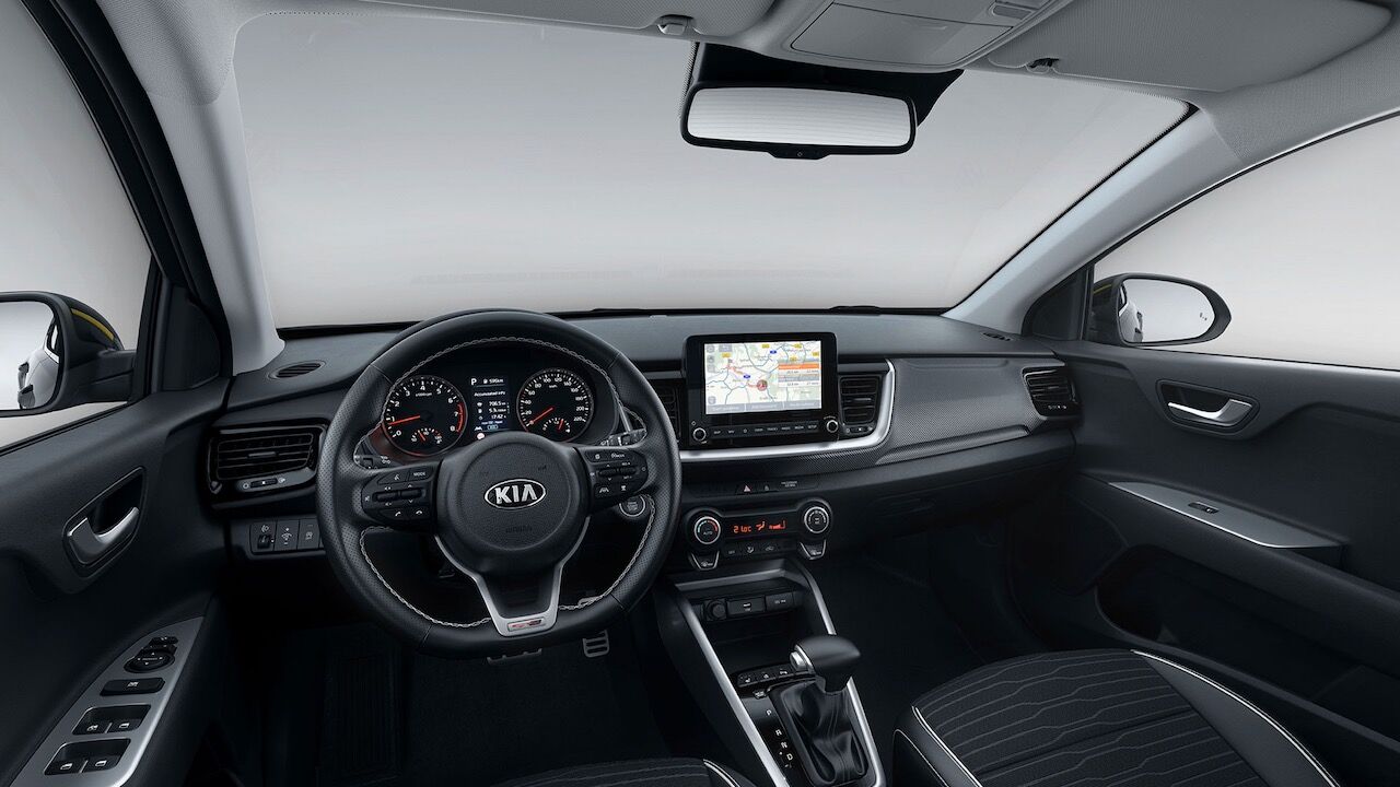 En el interior del Kia Stonic GT Line se pueden ver molduras efecto fibra de carbono y unos asientos deportivos con tapicería mixta y costuras en contraste. El volante cuenta está achatado, cuenta con el logotipo GT Line y está tapizado en cuero perforado. La tecnología sigue estando a la altura gracias al sistema multimedia UVO Connect y sus múltiples opciones en conectividad.