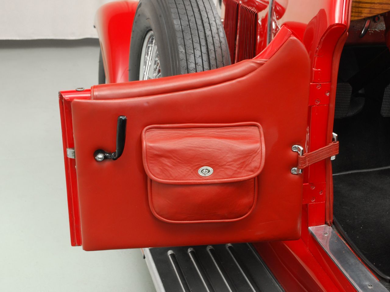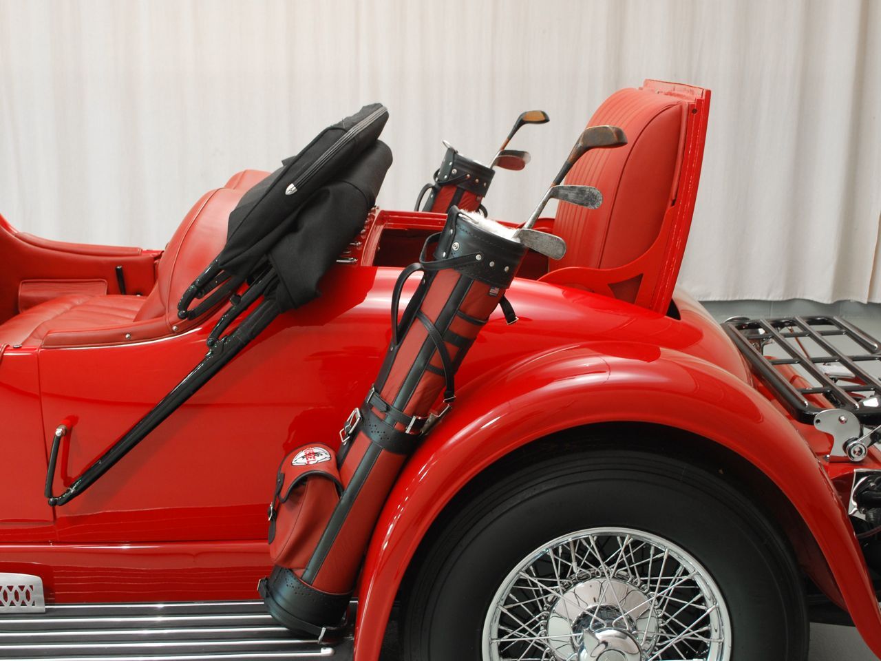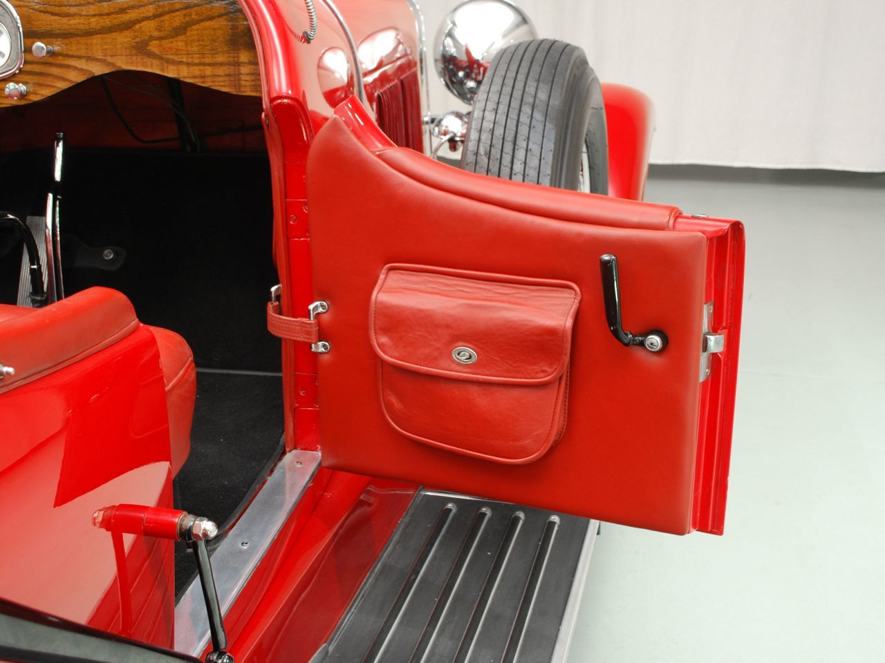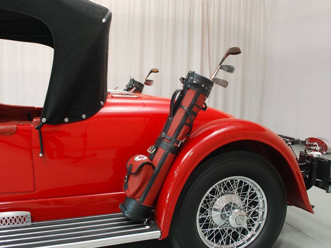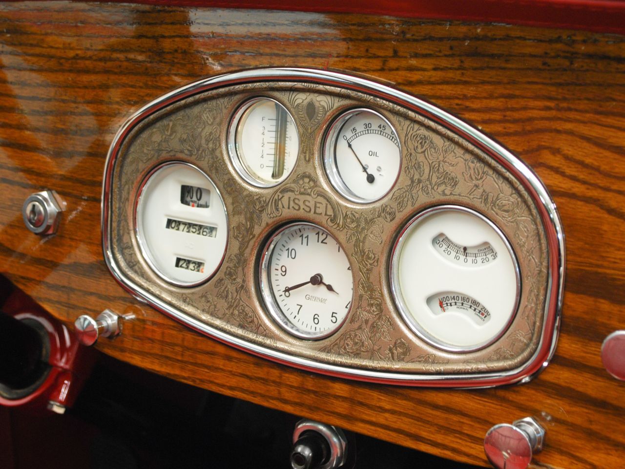 Dentoro, nos hemos enamorado del volante de cuatro radios de madera, en un tablero de instrumentos también de madera, totalmente barnizada, dura y sólida. La tapicería, roja como el exterior y el techo de lona negro, contrastan con las ruedas cromadas y neumáticos negros. El y sustancial como la Kissel sus gracias.