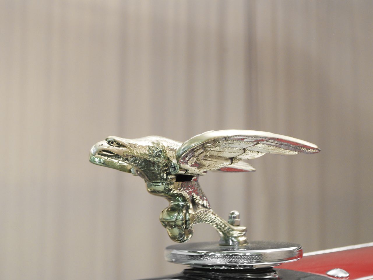 Pero sin duda su característica más inusual, sin embargo, es la insignia sobre la tapa del radiador, un águila con las alas extendidas, pero que tienen un resorte para que se movieran cuando atravesase el aire... como si quiseera remontar el vuelo que no pudo remotar la empresa que lo fabricó.
