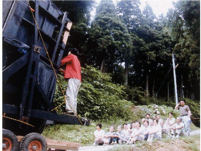 Egashira añade: «Con el paso del tiempo construimos una relación muy cercana con aquella cosa que llevábamos de un pueblo a otro, es una procesión que parecía una caravana medieval de peregrinos llevando una reliquia preciosa. Debía de ser tan extraño que los habitantes más ancianos que visitábamos nos miraban alucinados; éramos un grupo de gente de todo el mundo con un convoy lentísimo de coches, furgonetas y el tractor que llevaba la cámara en el centro, atada con cuerdas para protegerla».