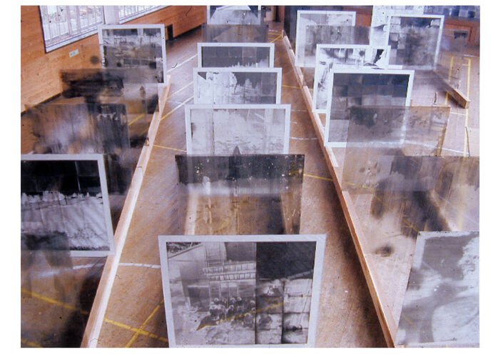 «Las imágenes se mostraron más tarde en un antiguo vestíbulo con altas ventanas. Se mostraron veinte o más hojas enormes de cristal con imágenes donde se veía a gente de esta tranquila esquina de Japón, en color sepia y un enfoque muy brumoso, que podían haber sido tomadas cientos de años antes».