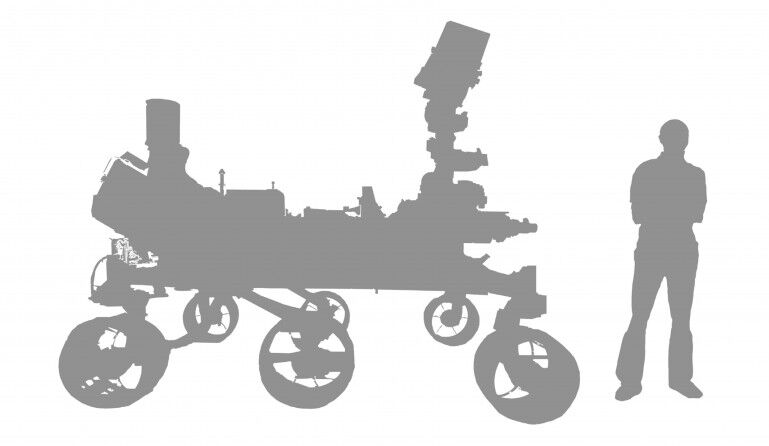 El Rover Curiosity es el vehículo todoterreno explorador más grande jamás enviado a Marte. El tamaño de este 4×4 es de tres metros de largo, 2,1 metros de altura con su mástil extendido y pesa 899 kg. Tiene propulsión nuclear con un generador termoeléctrico de radioisótopos de 2.700 vatios y baterías de iones de litio.