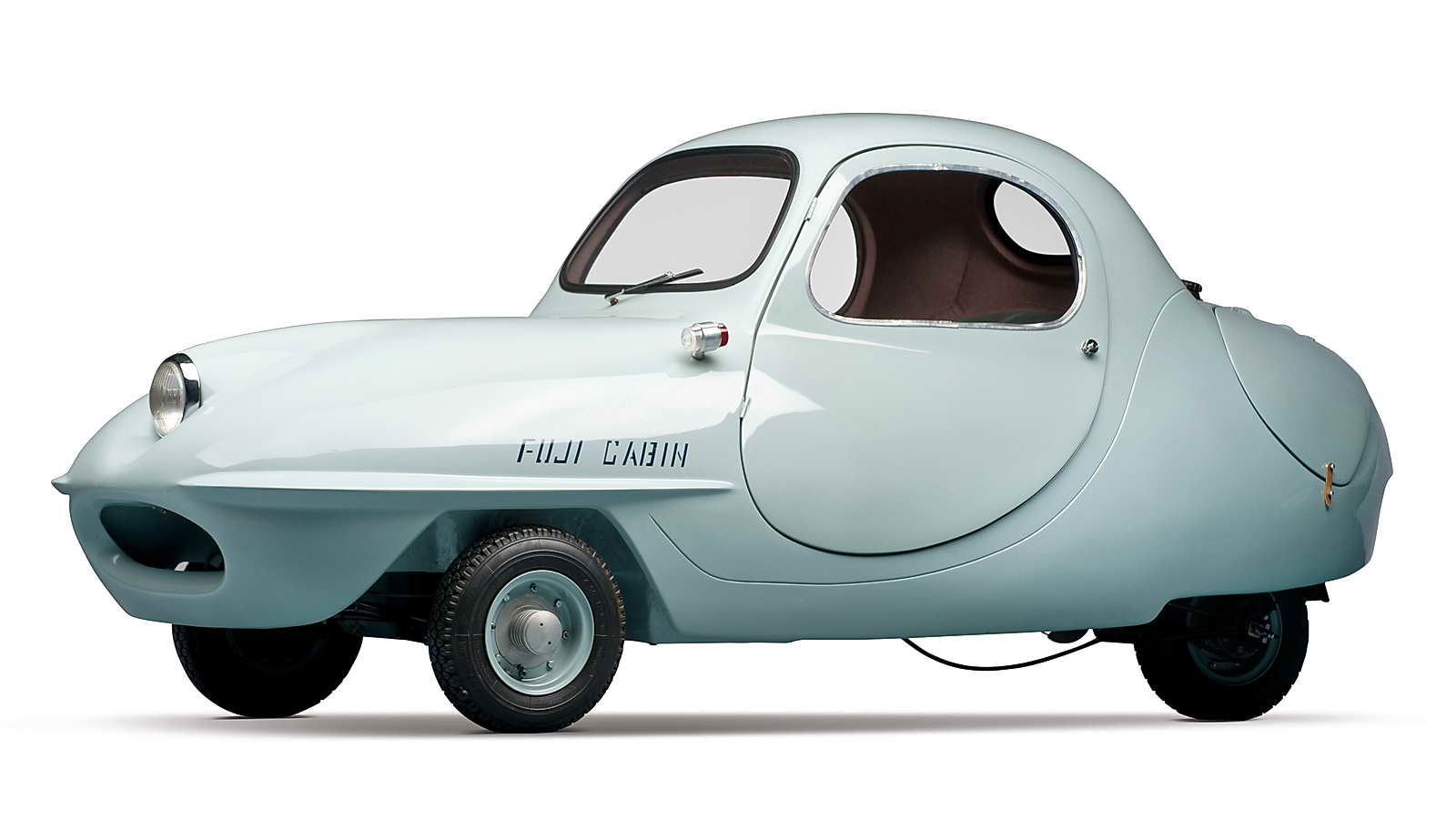 Este Fuji Cabin es uno de los pocos micro-coches de tres ruedas construidos en el devastado Japón, tras la conclusión de la Segunda Guerra Mundial. En marzo de 1946 la firma Diesel Automobile Manufacturing Company fue desmantelada por los norteamericanos y dividida en varias empresas: Hino para los camiones e Isuzu para los automóviles, mientras que Hitachi Aviation no podía seguir ejerciendo su labor porque la tecnología aeronáutica era considerada por los aliados como “industria de guerra”, de tal forma que tuvieron que sobrevivir reciclándose en otros menesteres. El Fuji Cabin está propulsado por un motor de moto Gasuden, monocilíndrico de 2 tiempos y 122 centímetros cúbicos que entrega una potencia máxima de 5,57 CV, suficientes para mover un vehículo de tan solo 2,92 metros de longitud (9 ft. 7 in.). Solamente se produjeron 85 unidades en total.