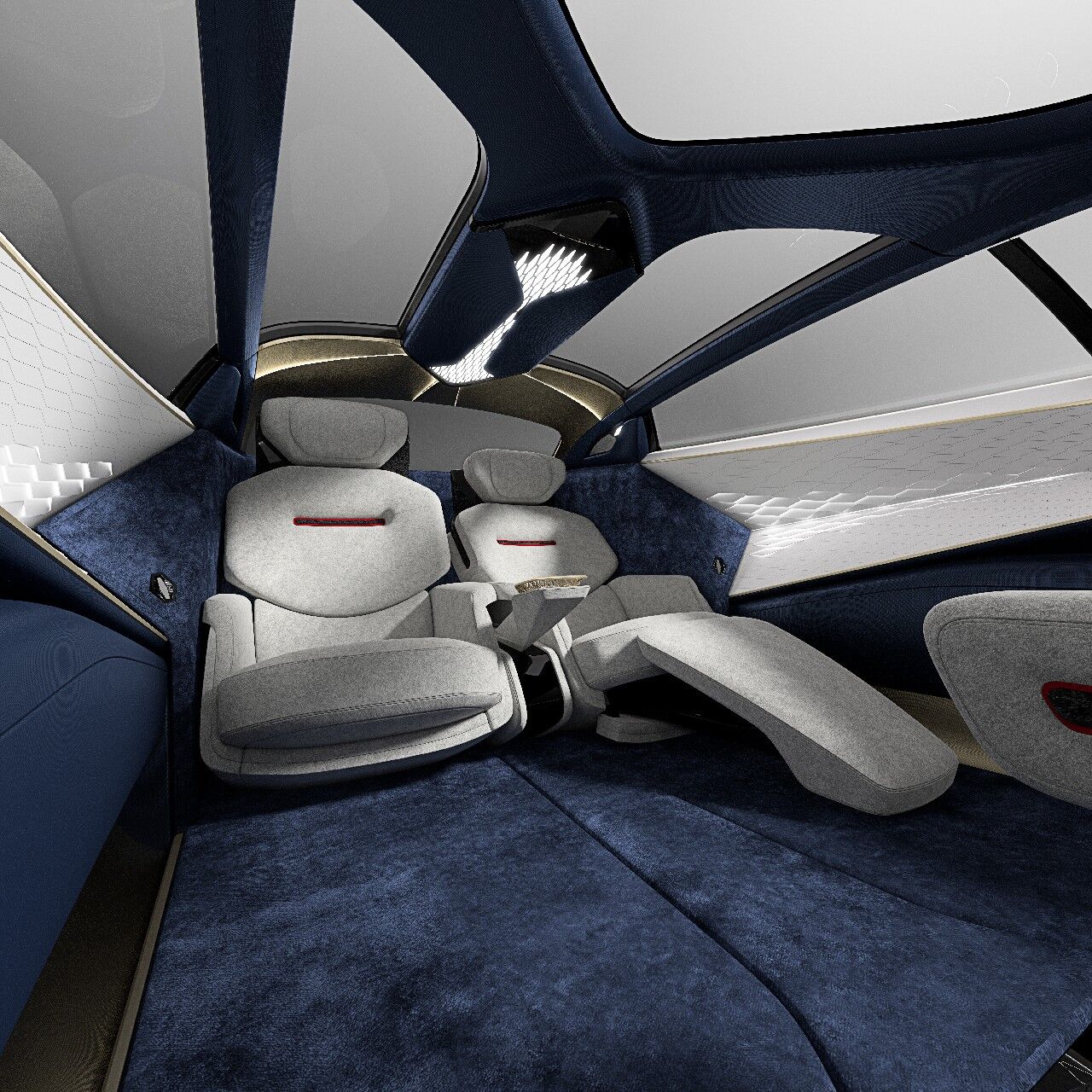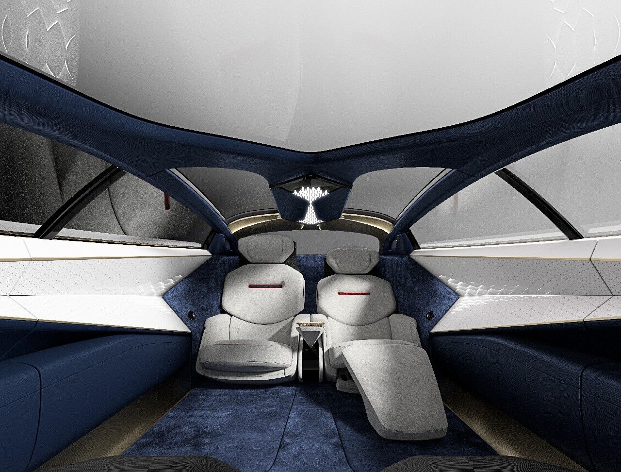 Una vez en el interior se respira el lujo y el cuidado por los materiales, dos factores a los que ha ayudado el artesano británico David Snowdon. Eso explica que además de tener fibra de carbono o cerámica, cuente con tejidos como la seda o el cachemir desarrollados por sastres de forma artesanal. Solamente hay cuatro asientos individuales que parecen butacas y que se benefician de un gran espacio debido a la gran distancia entre ejes.