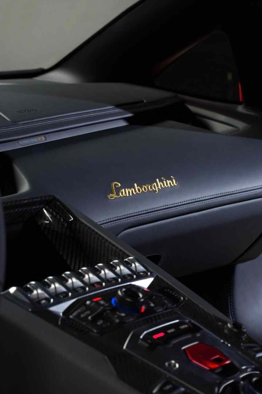 Otros detalles destacados son las llantas de 20 y 21 pulgadas, que pueden ir pintadas en plata o en dorado. En el interior no falta la habitual placa identificativa que acredita que es un auténtico Aventador Miura Homage. Hay dos colores de interior y en los asientos se ha bordado en dorado el logotipo Miura 50.