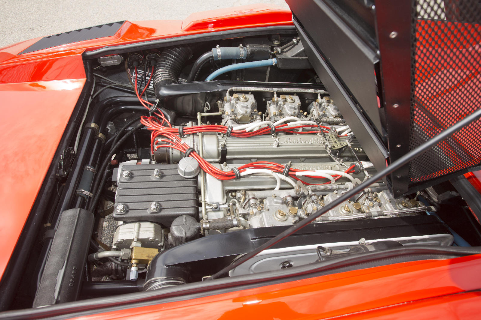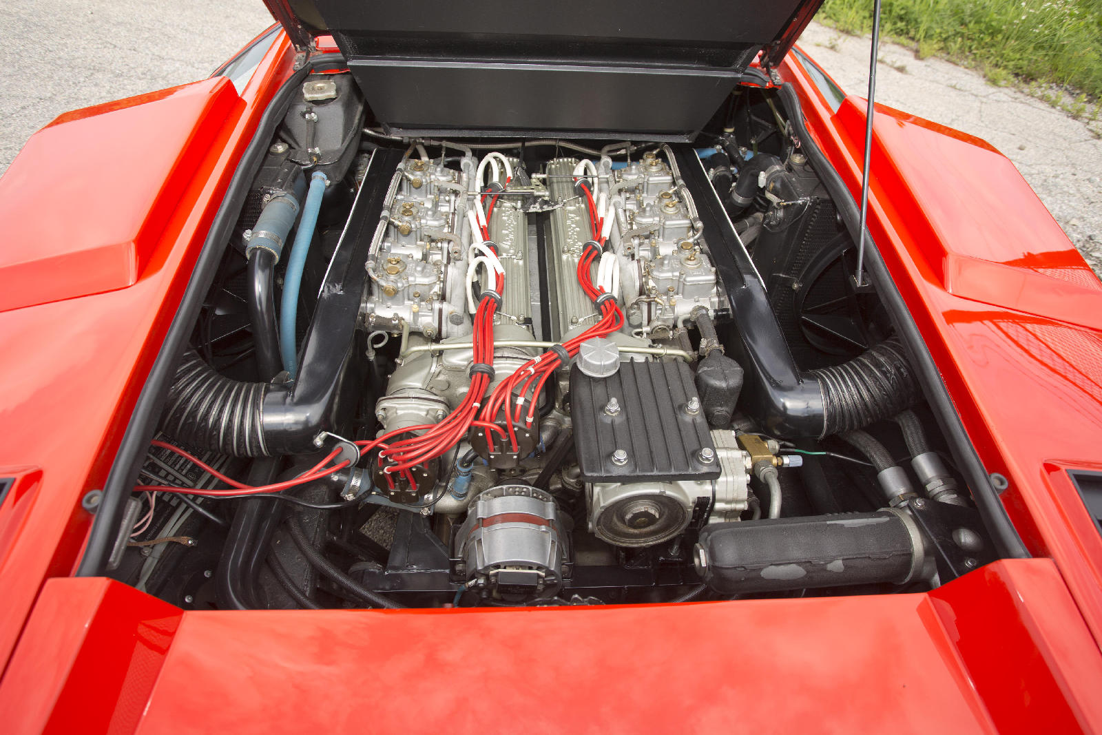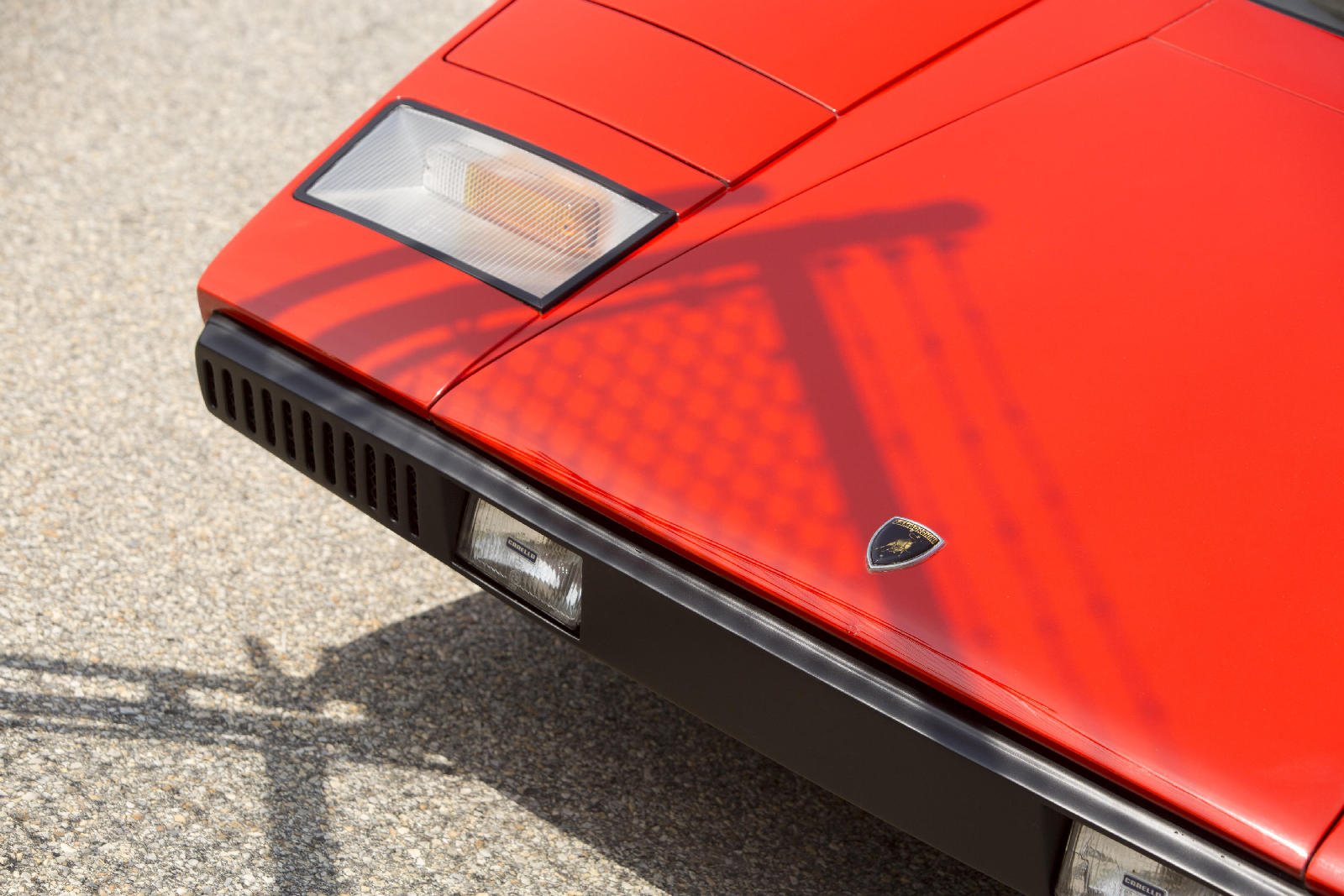 Y si hoy recordamos al fabuloso Lamborghini Countach Periscopica es porque una de esas joyas, el chasis no. 1120126, producido en el segundo año de producción del modelo, en 1975, sale a subasta. Salió de la fábrica como ves en las fotos, pintado en Rosso Lamborghini, ese rojo anaranjado quemado, con el interior negro.