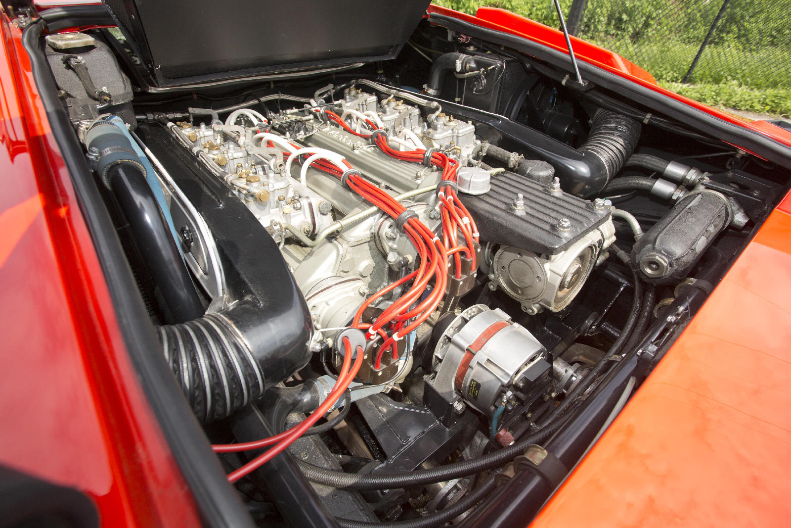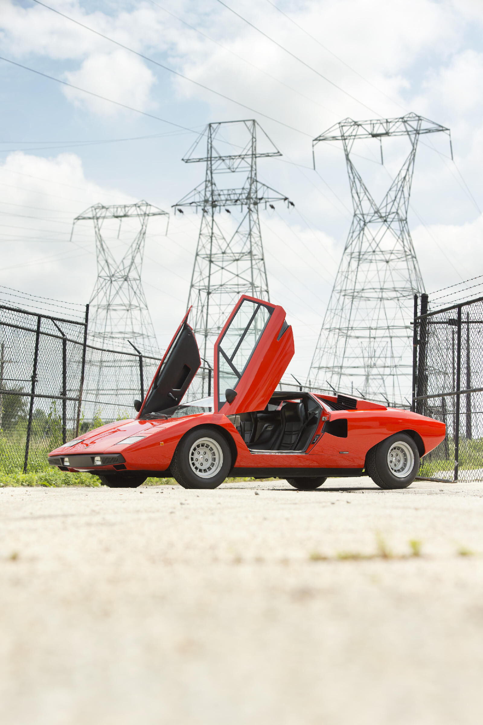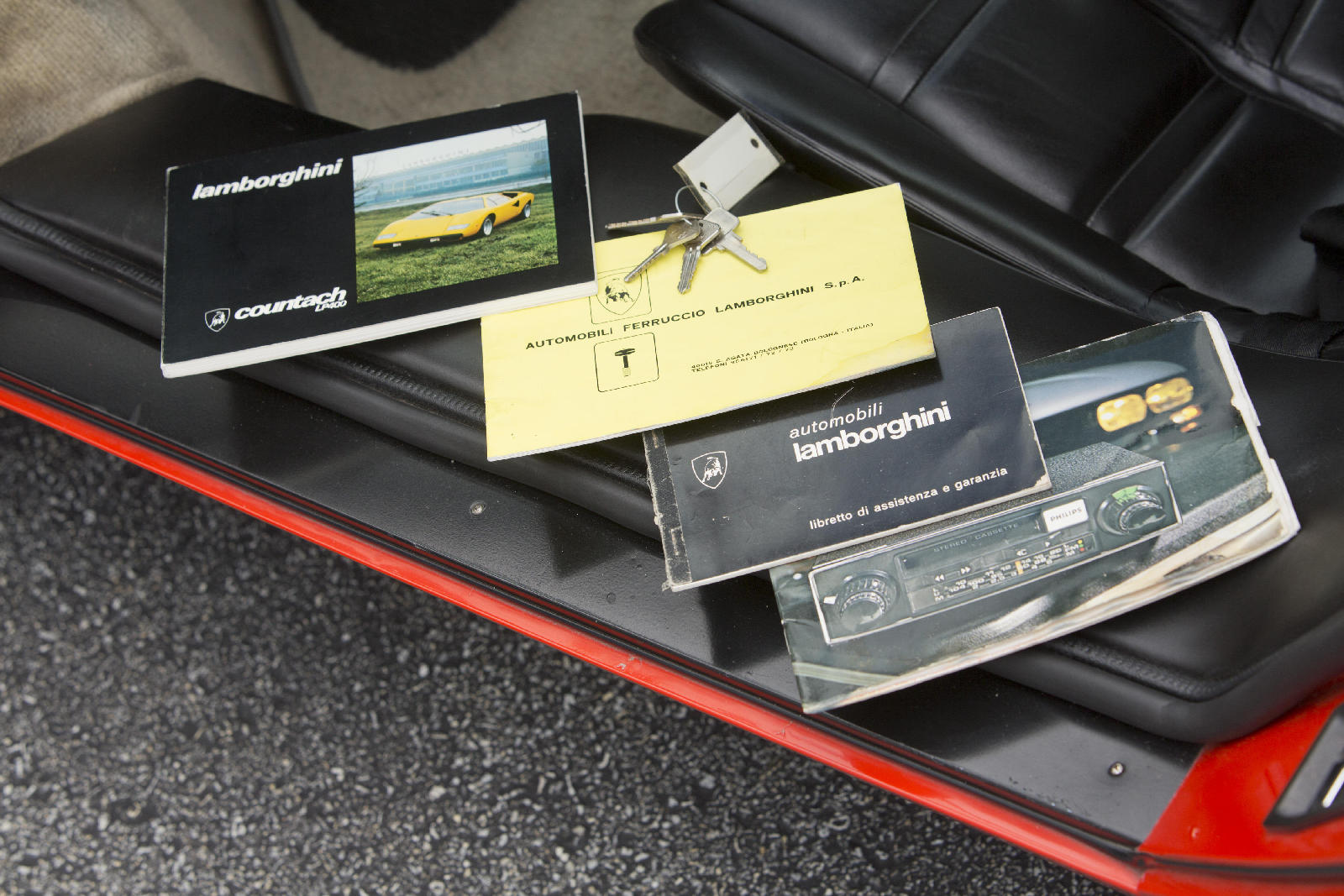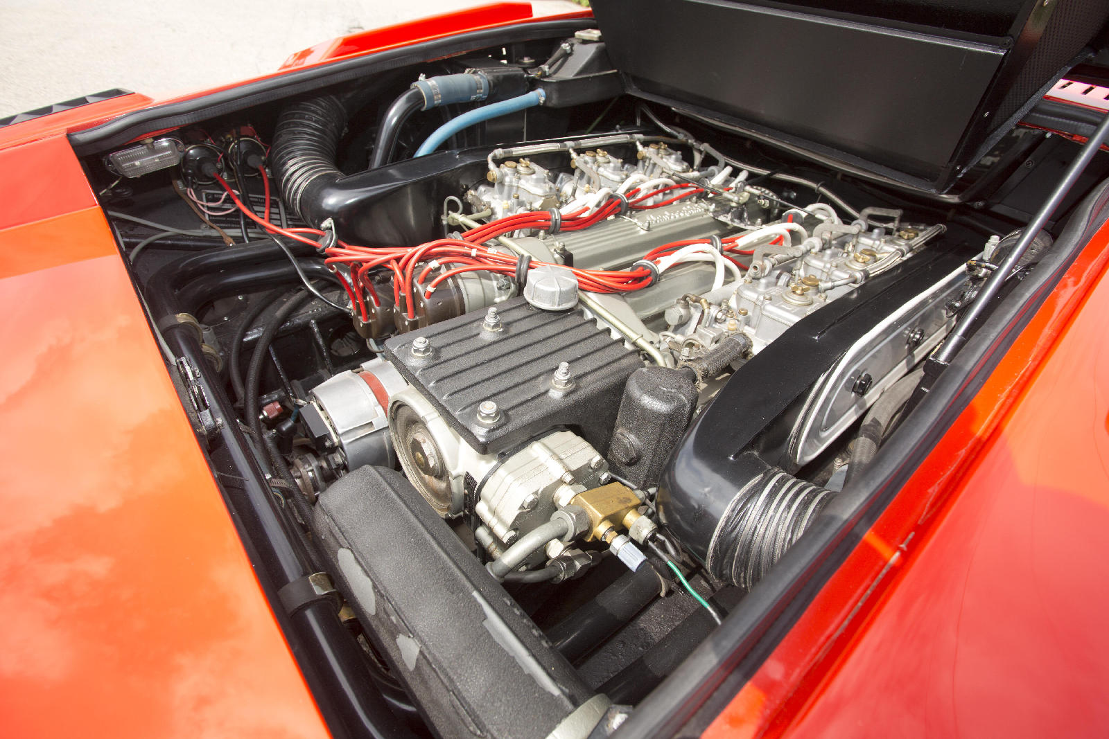 Y si hoy recordamos al fabuloso Lamborghini Countach Periscopica es porque una de esas joyas, el chasis no. 1120126, producido en el segundo año de producción del modelo, en 1975, sale a subasta. Salió de la fábrica como ves en las fotos, pintado en Rosso Lamborghini, ese rojo anaranjado quemado, con el interior negro.