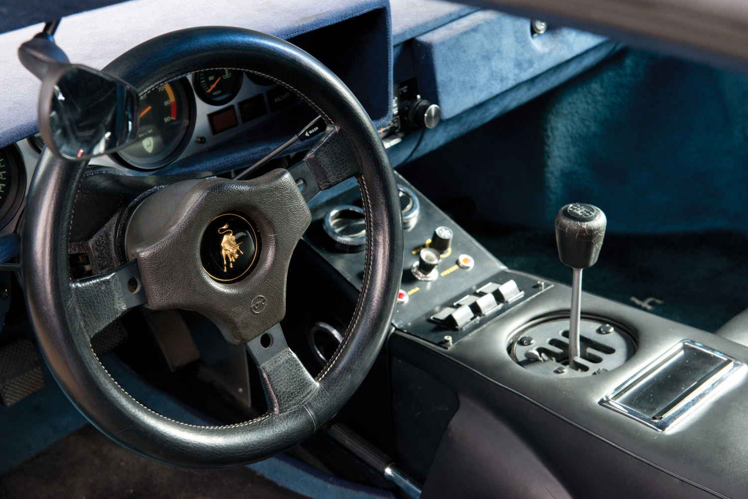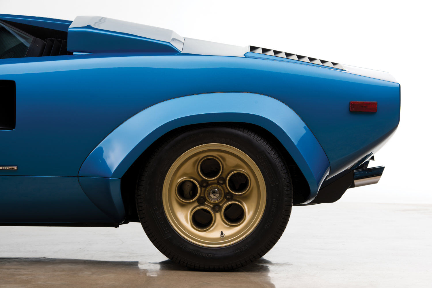 Se fabricaron apenas 237 unidades del Lamborghini Countach LP400S, en tres series distintas, y la más deseable de todas es la primera, o Serie I, que solamente contó con 50 ejemplares. Se distinguen por sus famosas ruedas Campagnolo Bravo y la unidad que ves aquí, con número de chasis 1121096, fue el antepenúltimo fabricado de esa serie, en 1979, y estaba equipado con los carburadores Weber 45 DCOE más grandes. Desde que se entregó en EE.UU. a su primer dueño se han cambiado los asientos, pero el salpicadero y alfombras son los originales, así como los libros y herramientas de fábrica, algo que sube el valor del coche.
