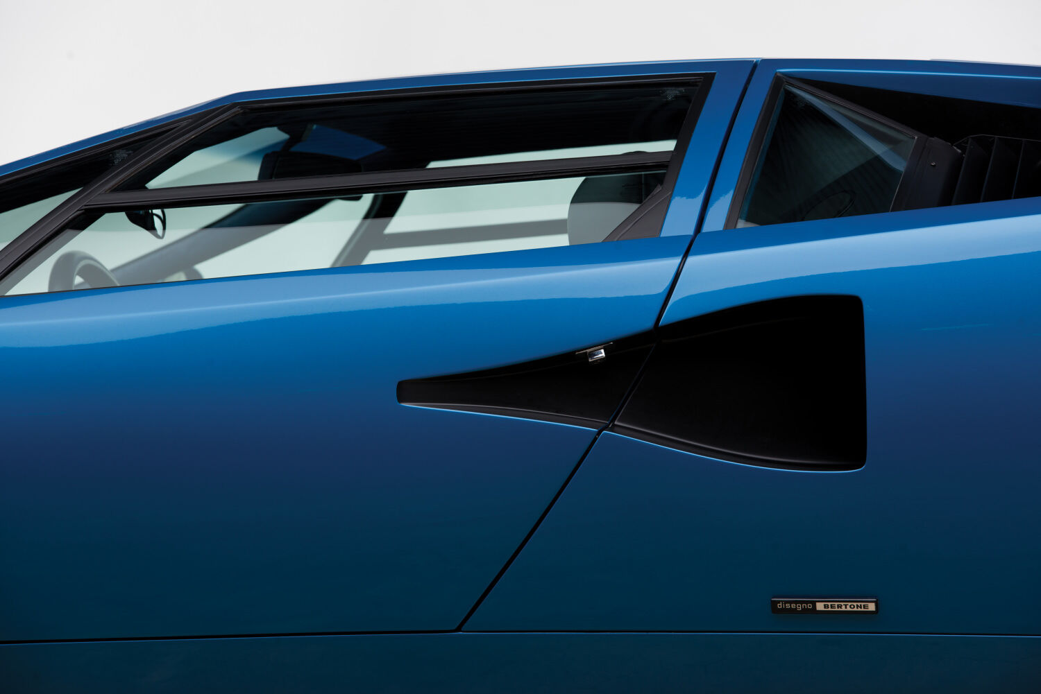 El Countach original de 1971 fue obra del joven e inexperto diseñador de automóviles Marcello Gandini que trabajaba para Bertone. Gandini trabajó sin restricción alguna y, al estar libre de vicios, logró crear un estilo en el que se basaron después el resto de superdeportivos modernos: un vehículo en forma de cuña, anguloso, bajo y ancho, de línea limpia, y con unas llamativas puertas de tijera.