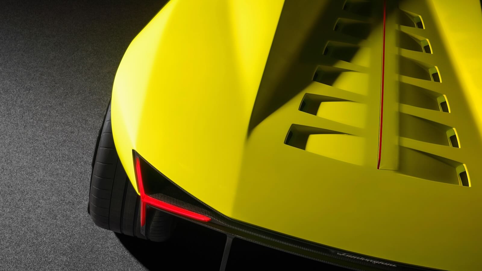 En la parte delantera, destaca la firma lumínica en forma de «Y» que se fusiona con un frontal que recuerda al Revuelto y al Aventador, creando una mirada intimidante. Grandes tomas de aire de fibra de carbono en la fascia inferior insinúan las formidables capacidades del vehículo.