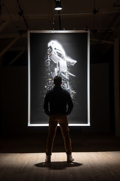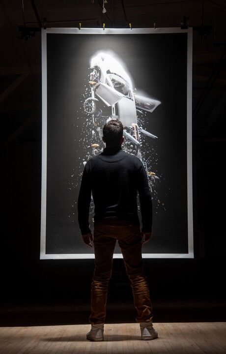 La resolución es tan enorme que puede leer pequeñas marcas en el orden de encendido del corazón V12 o maravillarse con los diferentes patrones de fresado en las ruedas dentadas de la transmisión. Cuanto más miras la composición, más secretos descubres… Es impresionante, no cabe la menor duda. “Para mí, ‘Space Time Memory’ es una analogía de recuerdos de nuestra vida. Los recuerdos están enraizados en el mundo físico; los hacemos en la realidad. Luego los almacenamos en nuestros cerebros, que podría considerarse el mundo digital”, dice Oefner.