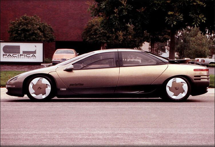 Un año antes, en 1986, Kevin Verduyn dibujó durante un estudio de aerodinámica interna las líneas de un concepto de sedán de cuatro plazas llamado Navajo. El proyecto nunca pasó de la fase de modelo de arcilla, pero en 1987, Bob Lutz, vicepresidente ejecutivo de Chrysler de aquella época, reconoció su potencial. Justo después nació el Portofino, que fue presentado en ese año en el Salón de Frankfurt.