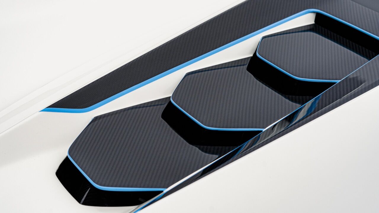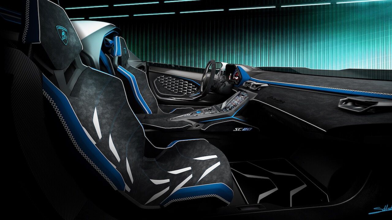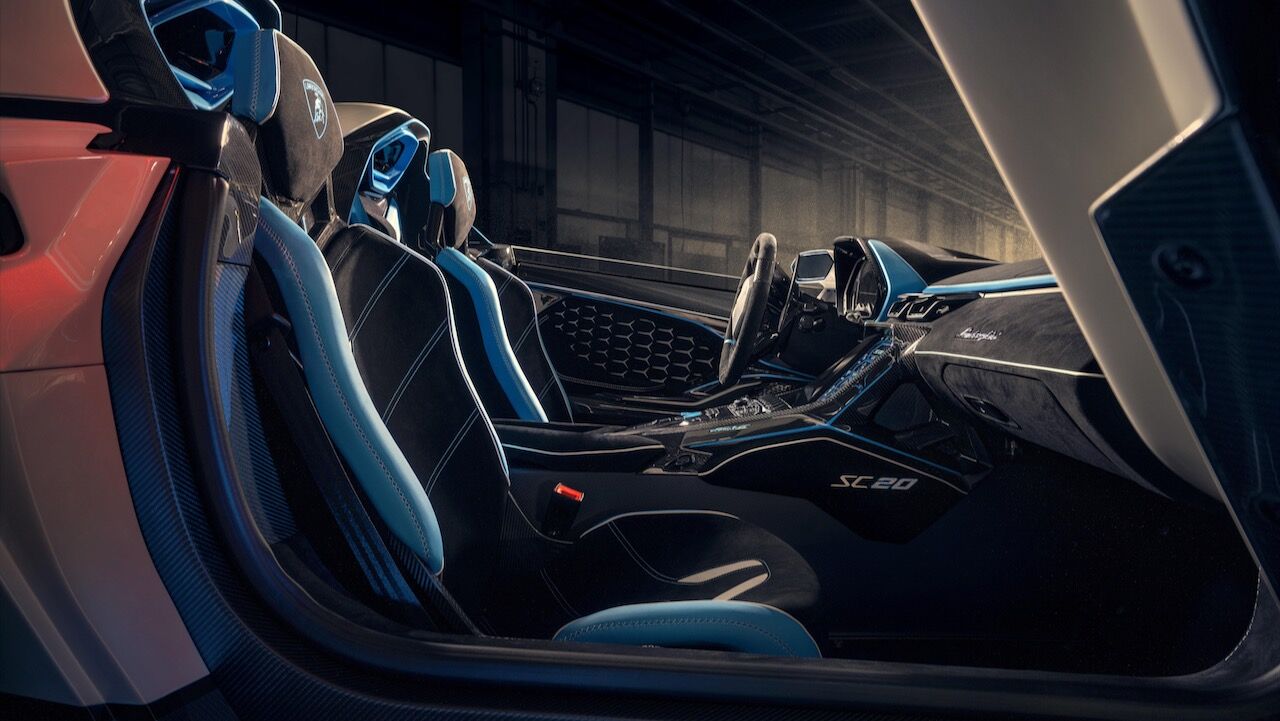 Destaca que este único Lamborghini SC20 que se hará cuenta con una configuración llamativa gracias al color base Bianco Fu y a los detalles en Blu Cepheus. En el interior se repiten los colores (aunque alternando los tonos Nero Cosmus y Bianco Leda), además de la fibra de carbono visible en zonas como los paneles de las puertas o la consola central. También se utiliza este material en las carcasas de los asientos, que reciben una tapicería de Alcántara y cuero. Destacar que las manecillas de las puertas son de aluminio macizo o que las salidas de aire se hacen mediante impresión 3D.