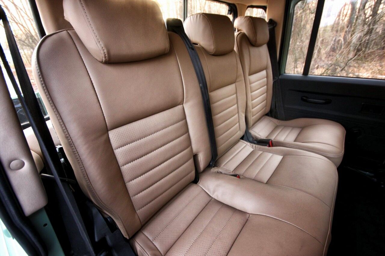 Para este ejemplar que ilustra vuestras pantallas, el equipo de Kowal tomó como base una edición especial lanzada en 2010 en homenaje a la primera serie de 1947. La carrocería se ha pintado en el mismo color Grasmere Green Pearl con el techo en Alaska White del Defender más longevo de la marca. También se montan las mismas llantas de acero Wolf de 16 pulgadas, aunque con neumáticos de nueva factura Goodyear Wrangler MTs 235/85. La suspensión ha sido por una SuperGaz que eleva la altura del coche en cinco centímetros.
