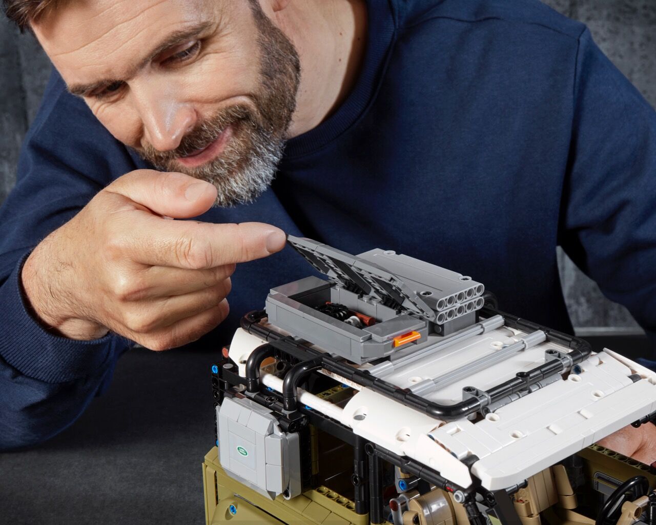 El diseño con toques clásicos del nuevo Land Rover Defender lo ha convertido en el perfecto modelo para reproducir con los bloques de LEGO Technic. Este set está formado por 2.573 piezas que se ensamblan para mostrar una imagen fiel a la del actual 4×4. Una vez montado alcanza unas dimensiones de 42 cm de largo, 20 cm de ancho y 22 cm de alto; bastante más comedido que los 4,58 m del Defender 90 al que emula.