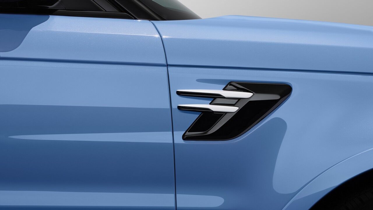Las modificaciones estilísticas sobre el Range Rover Sport SVR estándar integran a unas llantas de aleación forjadas de 22 pulgadas pintadas en negro, pinzas de freno negras y un nuevo capó ventilado de fibra de carbono que dudamos que se haya instalado para reducir el peso; 2.377 kg. Las insignias del modelo y molduras en cromo brillantes del exterior también se cambiaron por unos reemplazos en un tono negro brillante (Narvik Black) para los espejos retrovisores, la parrilla frontal, el splitter frontal y los acabados del portón trasero.