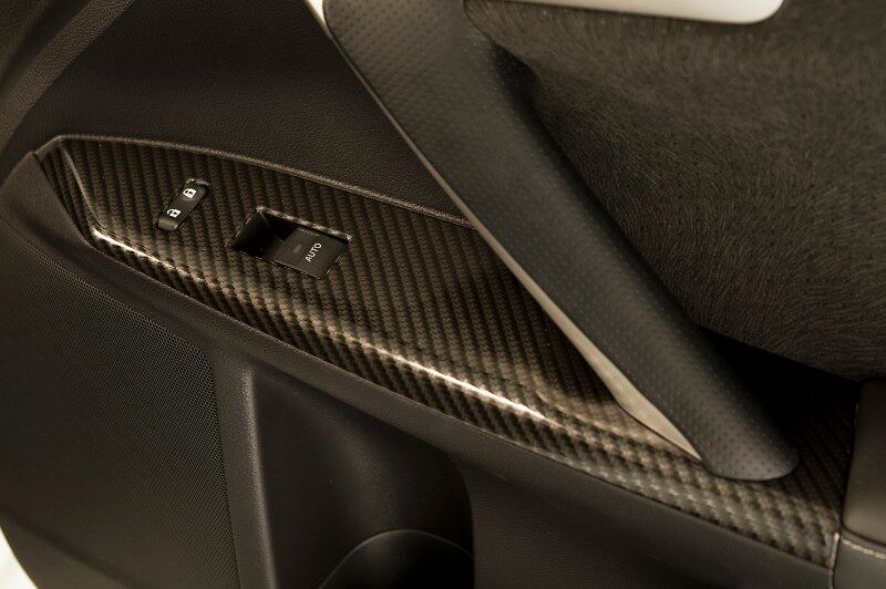 Si nos detenemos en el interior, las inserciones en fibra de carbono le dan al vehículo un aspecto más deportivo. Están formadas por inserciones en el panel de instrumentos e inserciones en las 4 puertas (delanteras y traseras).