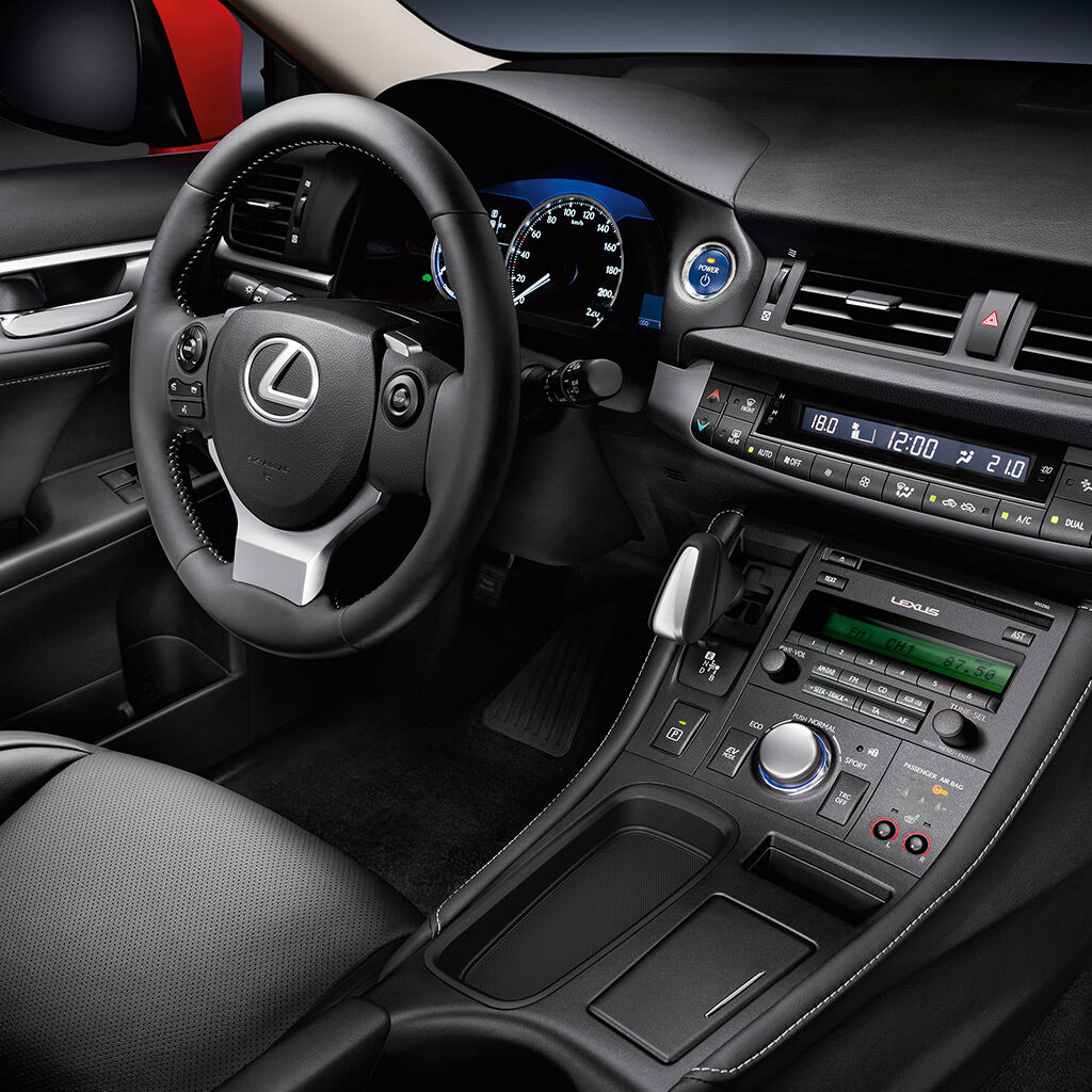 En el interior también encontramos novedades que dan más exclusividad a la versión Fuji respecto a lo elementos del CT200h de serie. La tapicería mixta de piel y tela es uno de ellos. Por otro lado veremos también como ahora incorporará climatizados bi-zona, sistema de navegación NaviBox, elevalunas eléctricos, bluetooth, botón para el arranque, cámara trasera, control de crucero...