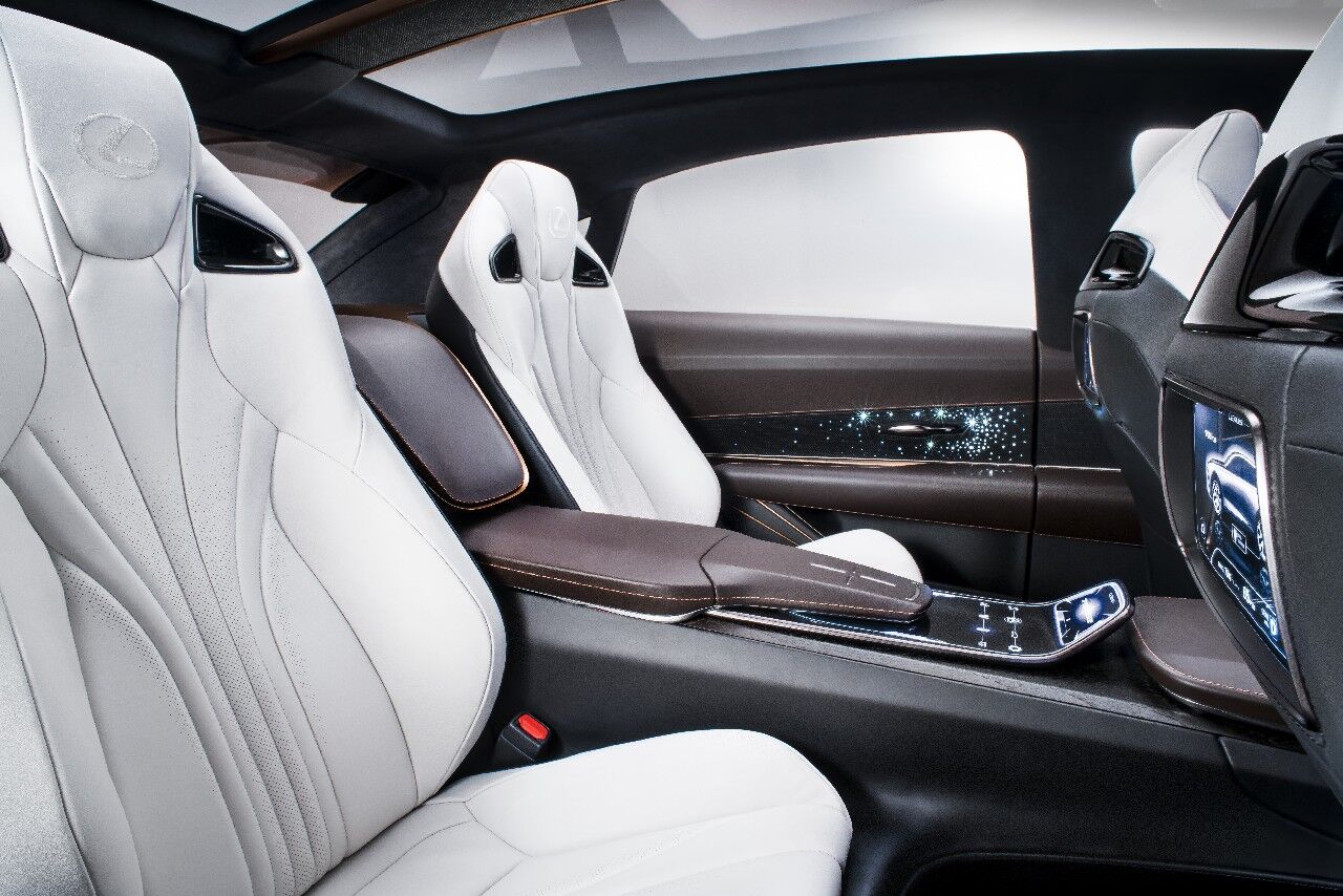 El imponente prototipo tiene unas medidas notables. Consigue una longitud de 5,01 metros, una anchura de 1,99 metros y una altura de 1,60 metros. Para ponernos en situación, es 12 centímetros más largo que el Lexus RX. La distancia entre ejes es de 2,97 metros para asegurar un buen espacio interior. Otra de las singularidades de este modelo es que está hecho sobre una plataforma que admite casi cualquier tipo de sistema de propulsión (pila de combustible, híbrido, híbrido enchufable, gasolina o incluso totalmente eléctrico).