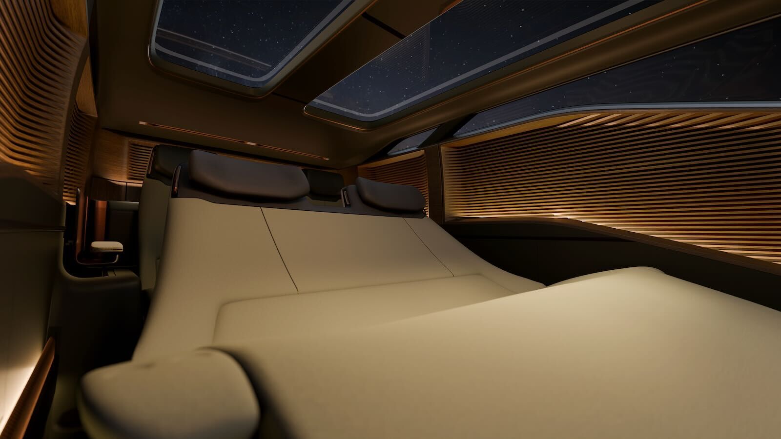 Esta disposición aporta una mayor estabilidad, distribución de peso y capacidad de carga, facilitando un habitáculo con hasta tres filas de asientos para siete ocupantes y una notable flexibilidad interior. Los ejes traseros dobles permiten girar los asientos de la segunda fila hacia atrás, creando un ambiente más social e íntimo para los pasajeros.