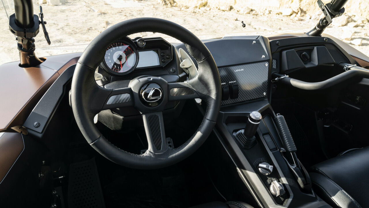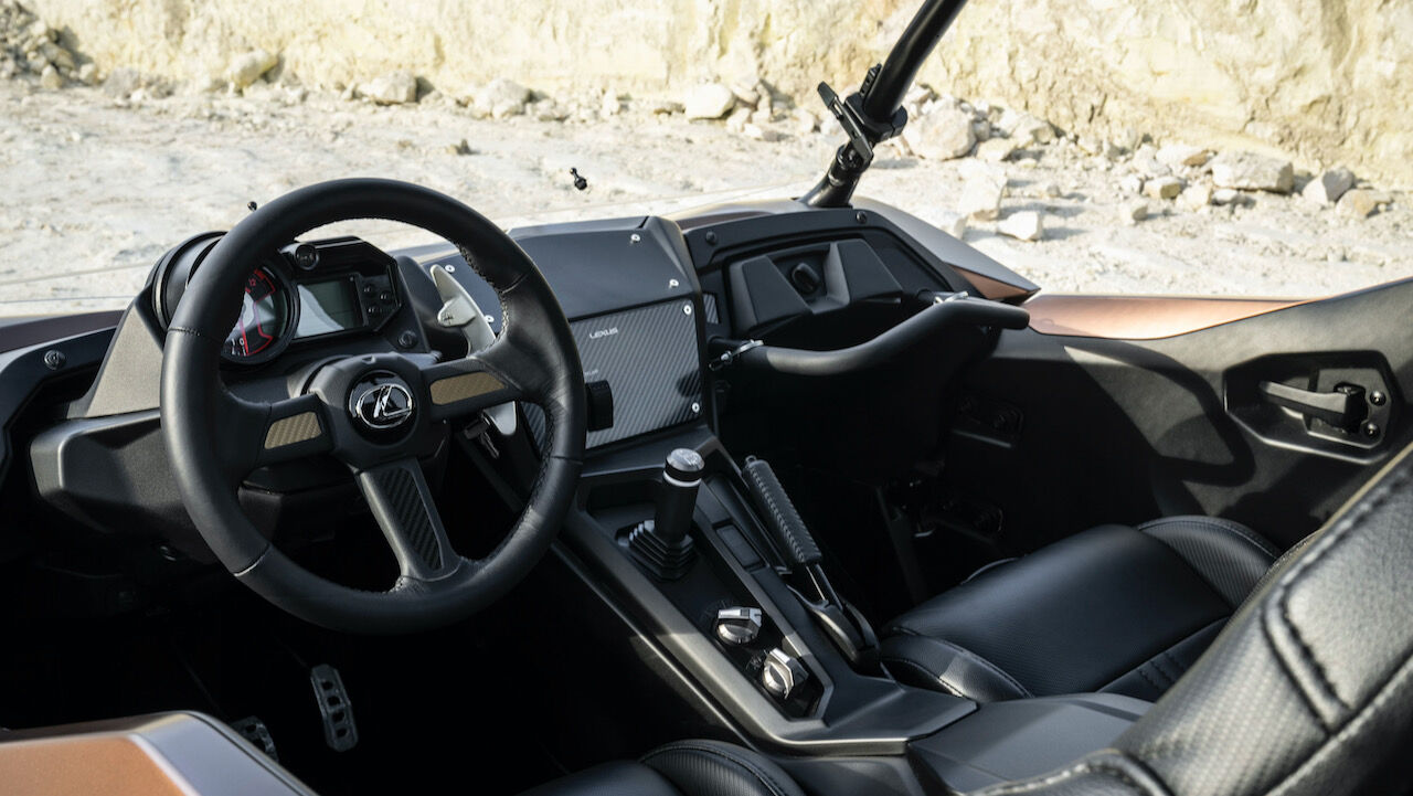 Simplemente con ver el diseño se puede apreciar claramente que es un Lexus. Toma las mismas líneas que vemos en su gama de modelos, con formas afiladas y ángulos acusados. Aunque claro, esto es un buggy en la que la jaula de seguridad es prácticamente toda la carrocería que hay, que lleva la suspensión al descubierto y que tiene unas medidas muy compactas. Se queda en una longitud de 3.120 mm, una anchura de 1.725 mm y una altura de 1.800 mm.