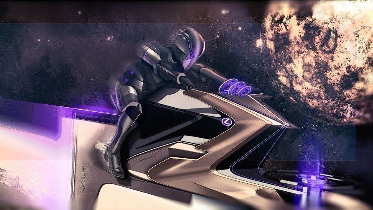 Entre las distintas propuestas, nos encontramos con un vehículo de tipo motocicleta llamado Zero Gravity de Karl Dujardin. Si bien se supone que debe montarse como una motocicleta, no tiene ruedas: fue diseñado teniendo en cuenta la levitación magnética. Se supone que esta máquina que bien podría aparecer en el mundo de Tron (1982) está diseñada para tomar la forma de “huso” de Lexus y ayudar a los ansiosos exploradores a deslizarse sobre la superficie surcada de la Luna.