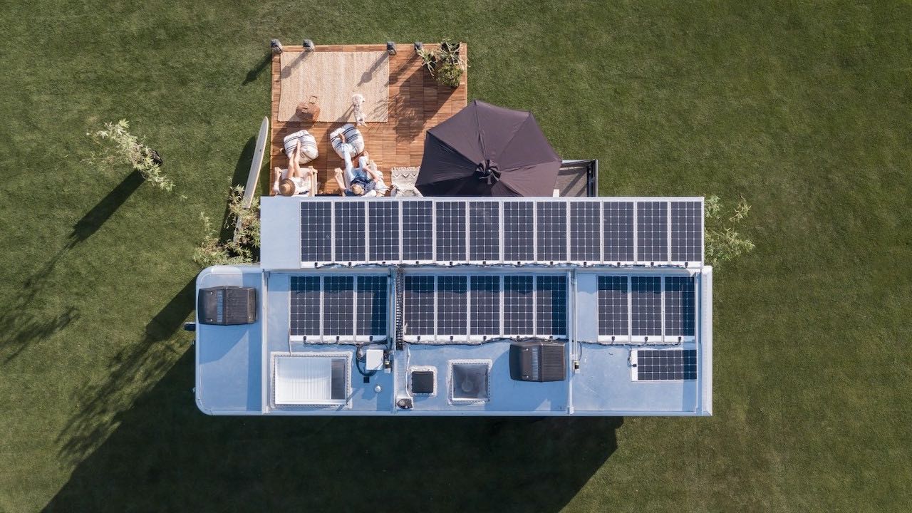 Pero lo mejor es el sistema de energía del Living Vehicle PRO-EV. Tiene paneles solares de 3.520 W que alimentan un sistema de almacenamiento de 57,6 kWh. Cuenta además con un inversor híbrido de 20 kW con el que puedes recargar vehículos eléctricos gracias a una estación de carga integrada de 240 V.