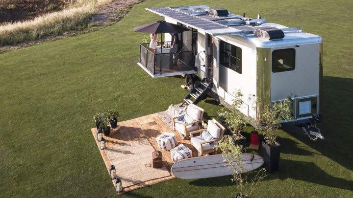 Esta empresa californiana fabrica caravanas de buen tamaño (se ven más en Estados Unidos), pensadas para viajes cortos o escapadas más largas. Está disponible en cuatro variantes y el más alto de gama emplea un sistema de energía mejorado que permite la carga de coches eléctricos en plena naturaleza, lo que abre enorme posibilidades a la hora de realizar escapadas prolongadas en zonas remotas.