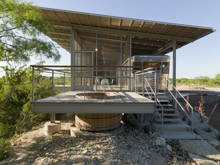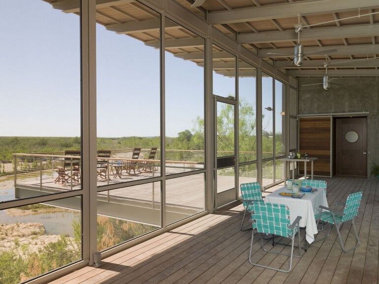 Según Hinman, en este domicilio “podría aterrizar hasta un helicóptero”, ya que está compuesto de vigas de acero. Aunque no solo eso, ya que, en el caso de que haya un tsunami puedes subir a la torre con total seguridad, por el simple hecho de que está muy bien anclada (eso dice el autor). Por lo tanto, este rancho se concibe como un refugio para descansar y desconectar de la rutina, un lugar donde puedes pescar, cazar o nadar con vistas al río Nueces, que se encuentra próximo a la casa.