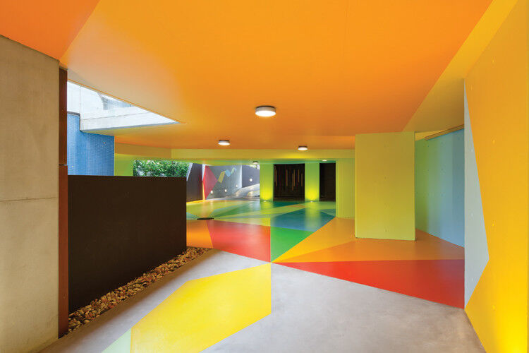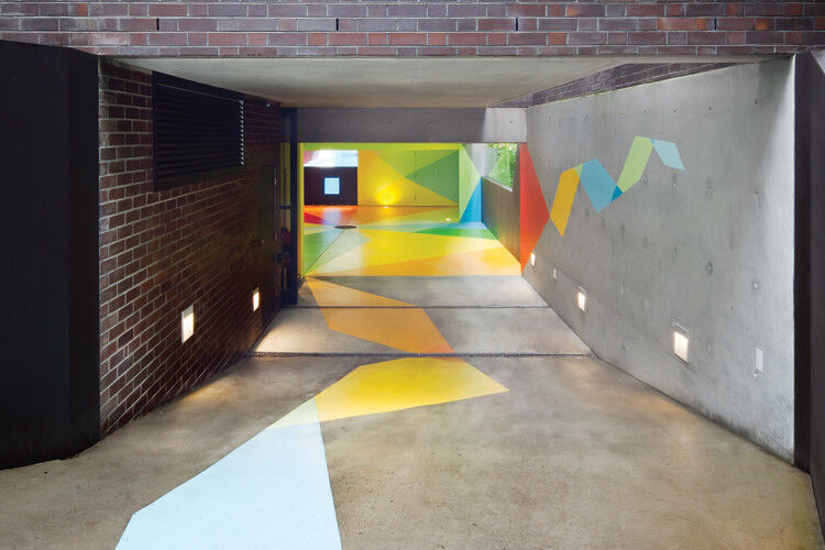Pero siempre hay una excepción a la regla, y el parque de automóviles en Darling Point (Sidney, Australia) ha vestido sus paredes y suelos con un colorido mural geométrico de Karl Maier y Craig Redman. Esta pareja de artistas ha jugado con un alucinante despliegue de formas geométricas de colores por las paredes, la calzada y hasta el jardín. Y sin un solo rincón oscuro para los malos.