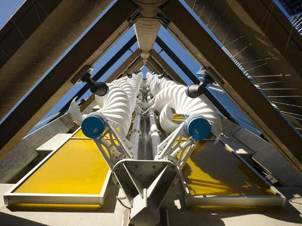 Diseñado por el estudio HOK, este aparcamiento tiene unas parejas de turbinas en forma de sacacorcho que se extienden desde la base hasta el techo de las paredes del edificio, recogiendo la energía del viento de las calles. Además, este garaje también cuenta con sistemas naturales de recogida de aguas pluviales y estaciones de carga de coches eléctricos para los conductores de la próxima generación de vehículos.