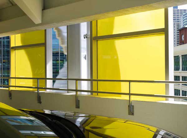 La mezcla salvaje de colores puede ser funcional. Al menos eso cree Axel Peemoeller, diseñador del aparcamiento de Eureka de Melbourne donde desarrolló un «sistema de indicadores del camino» que va dando instrucciones a los visitantes del garaje que hacen su camino por el interior.