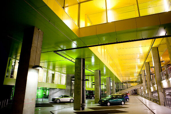 El arquitecto Paul de Ruiter dio al aparcamiento Veranda un aspecto muy futurista en su diseño. Construido en acero, con una estructura de aluminio y espejos de vidrio, ofrece un espacio para 650 coches y donde el nivel cero a ras de suelo se utiliza para la venta al por menor.