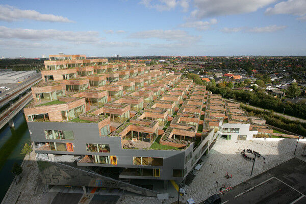 Bjarke Ingels, uno de los arquitectos más rompedores del panorama actual, ideó las viviendas de montaña para que proporcionasen un estilo de vida «rural» en un entorno urbano. Él y su equipo de BIG lo hizo organizando de la estructura del garaje en un ángulo debajo de las viviendas y así las casas de arriba parecen casas adosadas. Cada vivienda tiene su propio jardín individual, sin que pueda ver el del vecino. El lugar donde se aparcan los coches es impresionante desde el interior, lleno de colores brillantes y envuelto en la montaña.