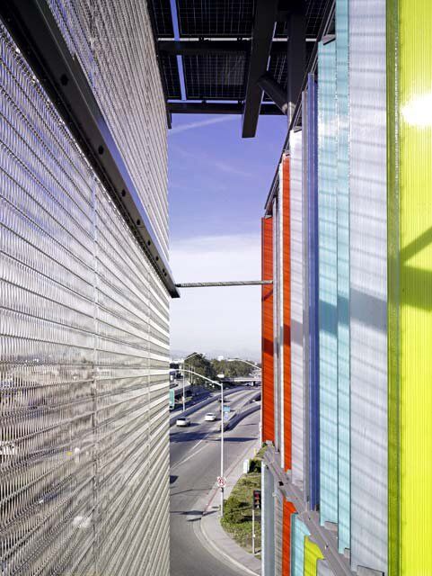 El objetivo del estudio de arquitectura Elliott y Asociados fue la construcción de un garaje que no pareciese una estructura de estacionamiento. Su solución fue ocultar los coches tras una «piel» usando una malla traslúcida. Las normas de la ciudad exigían que al menos el 20% de la estructura fuese abierta por seguridad, y la piel de malla se ciñó a esa normativa, dejando un 25% abierto al aire. ¿Lo mejor? La piel adopta diferentes colores como los amaneceres y atardeceres, ya que refleja los tonos amarillos, azules, naranjas y morados de su entorno.