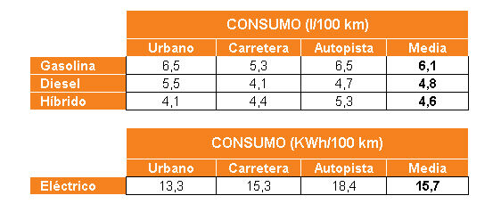 - En los trayectos urbanos (95% ciudad y sólo un 5% carreteras convencionales) el coste por kilómetro sería de 0,3168 euros para los híbridos, 0,3174 euros para el gasolina y 0,3206 euros para el diésel. Lo que viene a significar que los mejores datos corresponden a los vehículos híbridos, ahorrando 100 euros respecto a un modelo de gasolina, 450 euros sobre un vehículo diésel y 12.000 euros sobre un vehículo eléctrico.