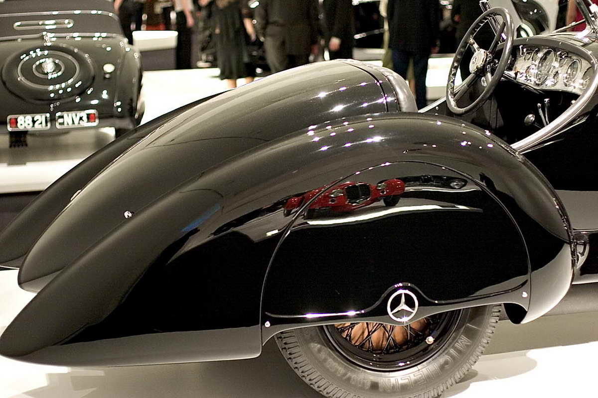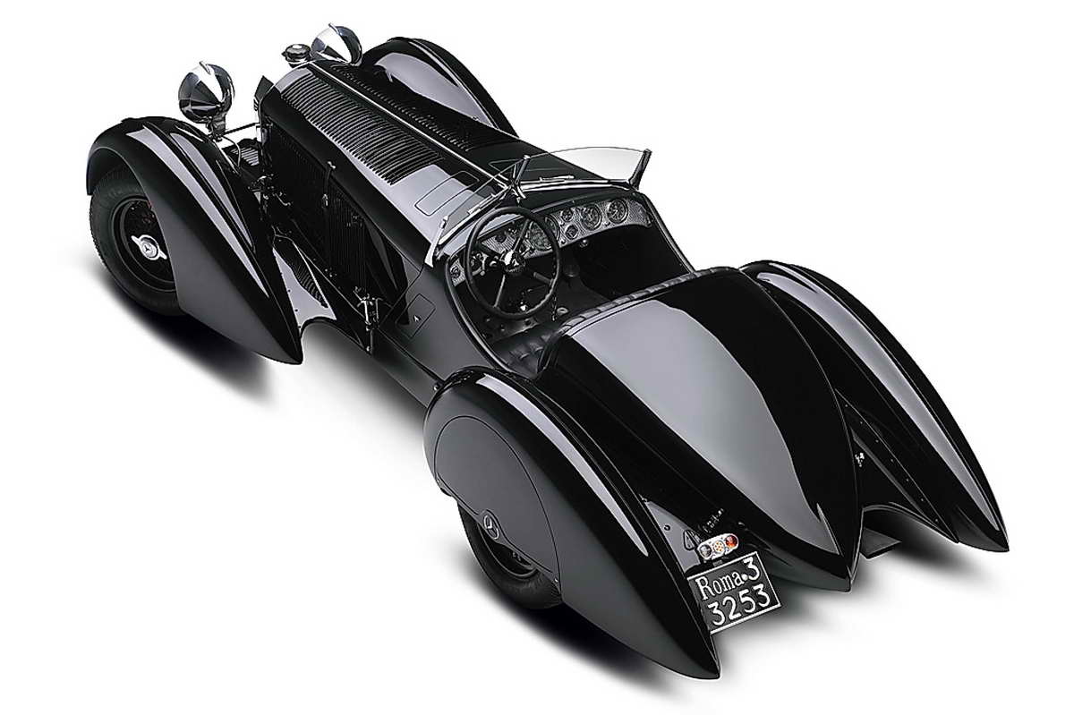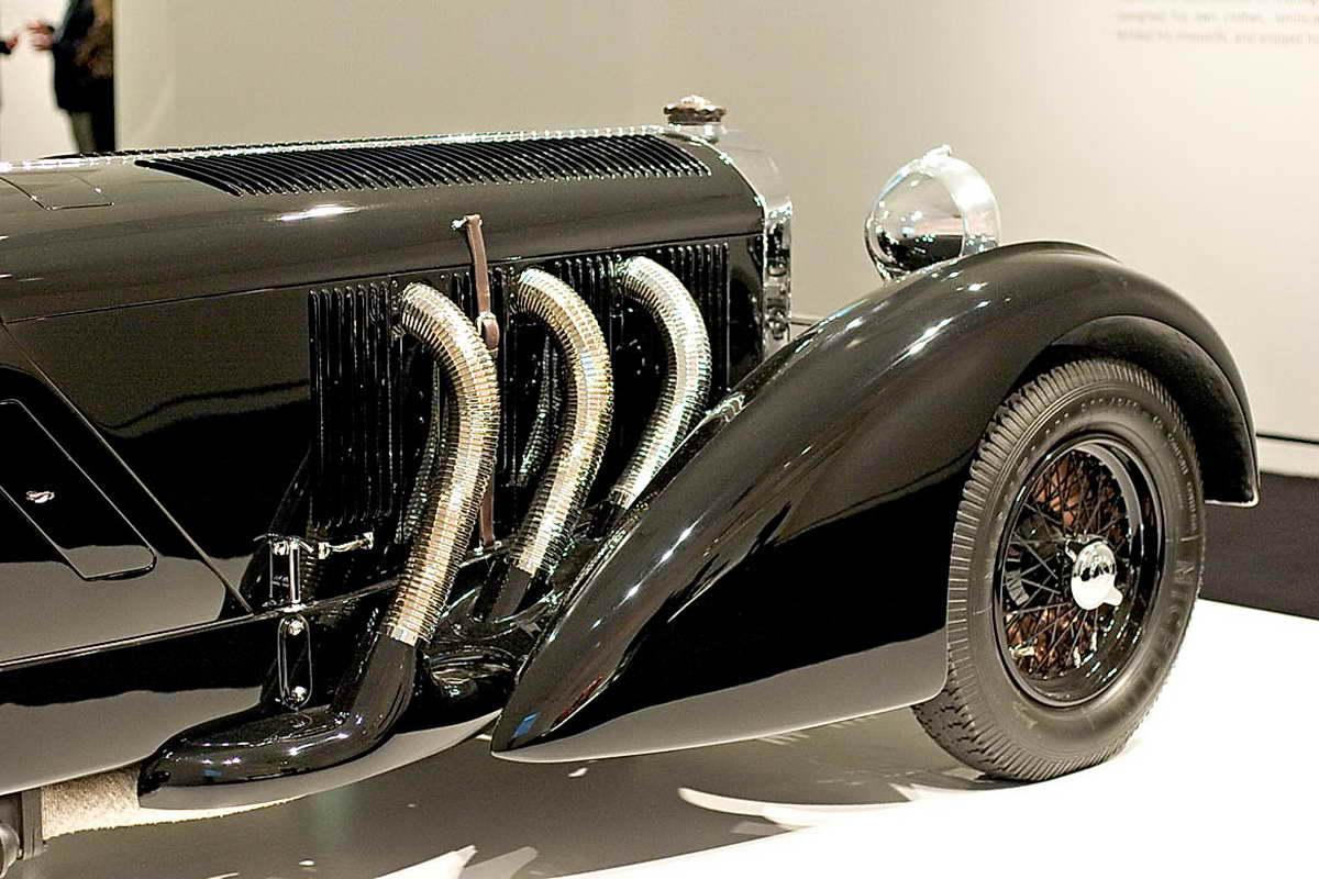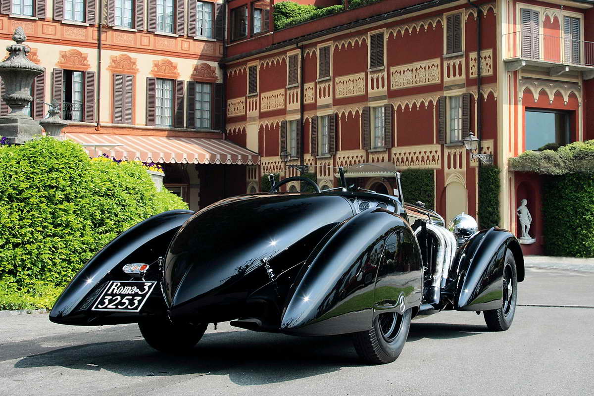 MERCEDES-BENZ SSK “COMTE Trossi”, 1930. El peculiar diseño de este Mercedes-Benz se atribuye al talento de su propietario, el conde aristócrata italiano Carlo Felice Trossi (que también fue piloto de carreras). El SSK representa el arquetipo de los Mercedes de la década de los 20, donde destaca su inmenso capó, que ocupa más de la mitad de su longitud, el sobredimensionado radiador de su frontal y los tubos de escape que discurren por los laterales.