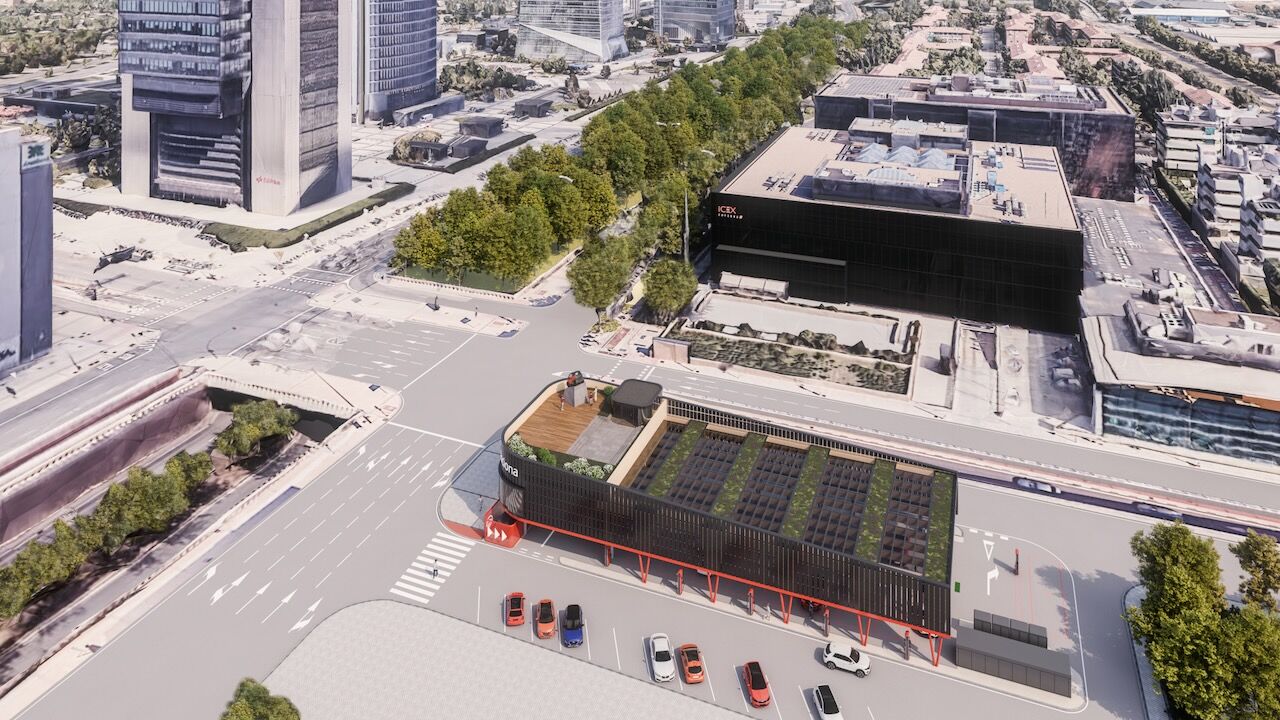 Aunque una de las claves en este proyecto es la sostenibilidad. Esta electrolinera incorporará un sistema energético con paneles solares para el autoconsumo que le permitirá generar un excedente anual de 35.000 kWh. A esto hay que sumar una fachada que elimina los contaminantes y purifica el aire, y un sistema de trazabilidad de la energía renovable en tiempo real. A nivel arquitectónico quiere estar integrada con el entorno, con una imagen actual y en línea con la zona. No hay que olvidar que estará cerca del nuevo centro de negocios de Madrid Nuevo Norte y de la renovada estación de Chamartín Clara Campoamor.