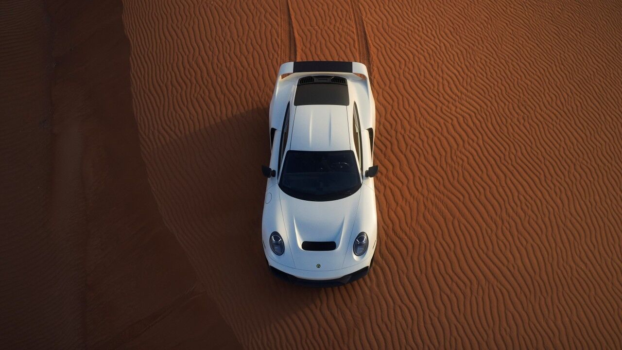 La carrocería, diseñada por Alan Derosier, ha sido hecha íntegramente de fibra de carbono, compartiendo solo su acristalamiento y sus faros con los de un 911 de fábrica. Los arcos más anchos delante y detrás, el alerón integrado y las grandes tomas de aire montadas a altura de la cintura dominan el nuevo diseño, y todos están referenciados directamente por el 959, pero con un énfasis aún mayor en la conducción todoterreno. Si quieres el traje sin pintar, Gemballa te deja tener un ejemplar a piel descubierta.
