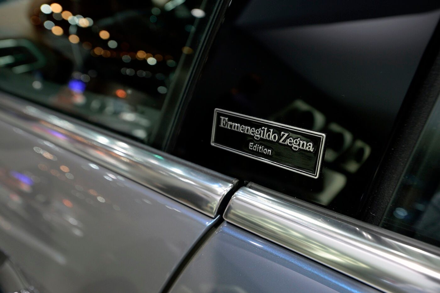 A partir de ahí comienza el espectacúlo visual creado por Ermenegildo Zegna. Para empezar, cuenta con un nuevo y exclusivo color Azzurro Astro... y se ha pintado con tres capas pigmentadas para ofrecer sensación de profundidad... y varía en función de cómo incida sobre ella la luz. La pintura tiene pigmentos de aluminio para resaltar las líneas. Tampoco las llantas son convencionales, pues están acabadas en Liquid Metal, pensando en unir tecnología y belleza.