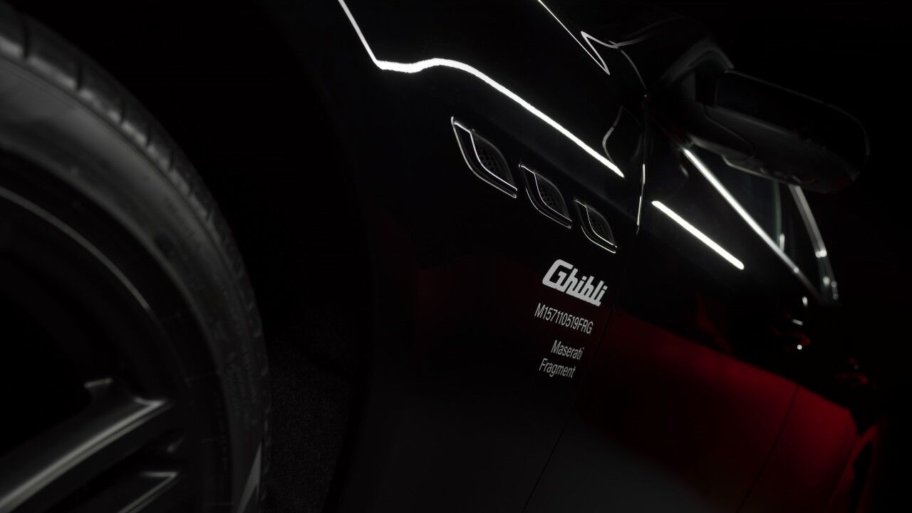 Por último, en la sección inferior de las salidas de aire laterales triples, se muestra un código simbólico. Porque la etiqueta alfanumérica “M157110519FRG” no está colocada ahí porque sea una nueva matrícula. En verdad, los primeros cuatro caracteres hacen la referencia al código de identificación de Ghibli, y las siguientes seis letras son un recordatorio del primer encuentro entre Fujiwara y el fabricante de automóviles italiano, el 5 de noviembre de 2019, mientras que las tres letras de cierre son la abreviatura de la marca de Fujiwara.