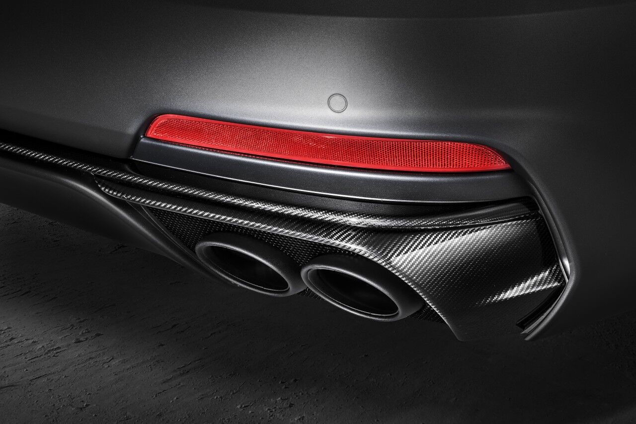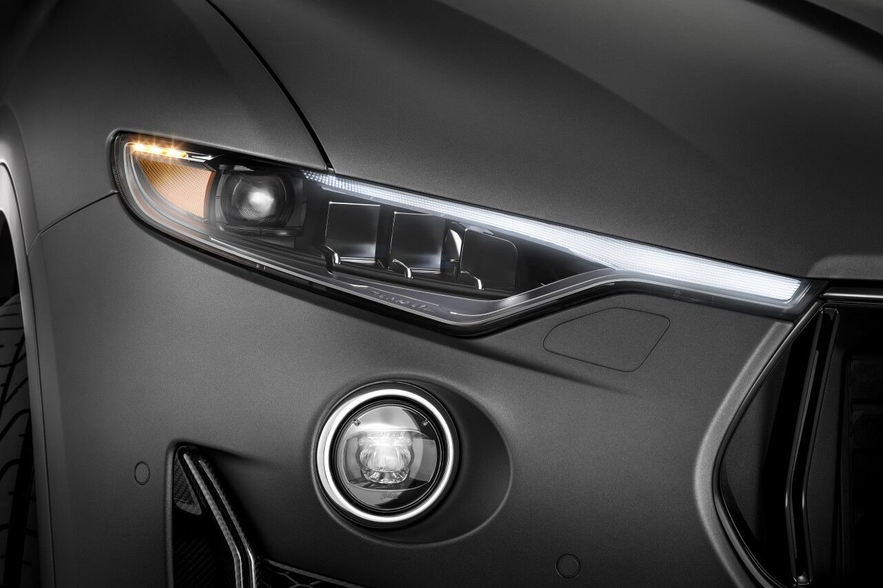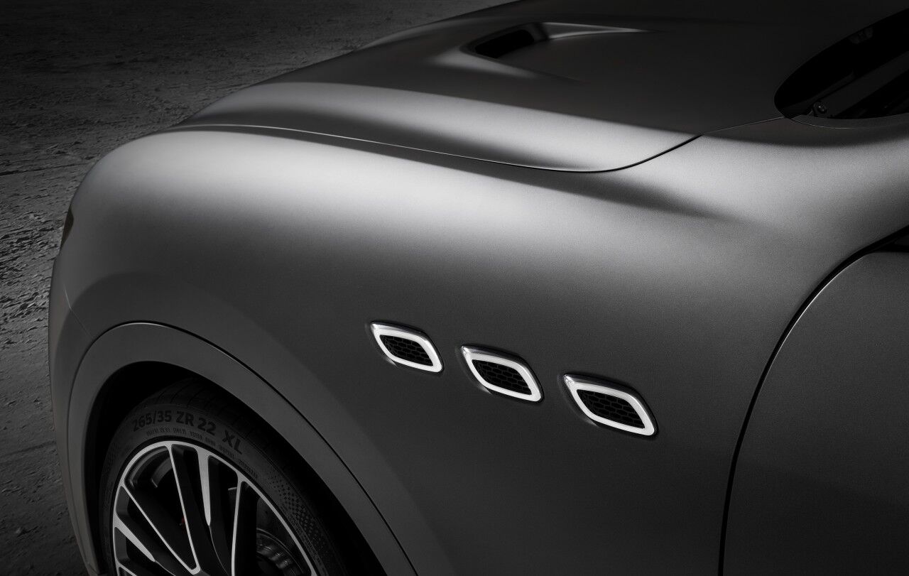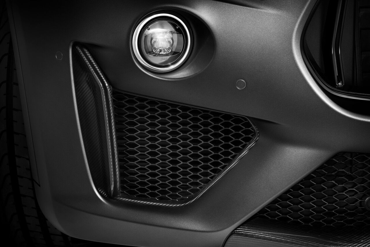 Si comenzamos por su exterior, se aprecia que el Levante Trofeo tiene una mayor presencia gracias a los paragolpes ensanchados o a las tomas de aire laterales que mejoran el flujo de aire. La parrilla con lamas verticales sigue siendo una de sus características principales y va unida a unos faros Full Matrix LED. Recibe unas enormes llantas de 22 pulgadas (las más grande en la marca) y elementos en fibra de carbono para dejar claro que es el tope de gama.
