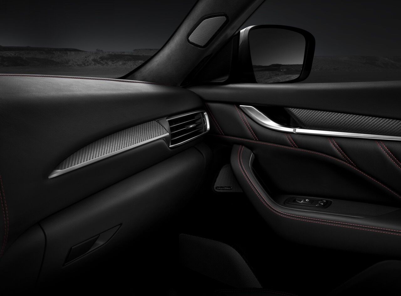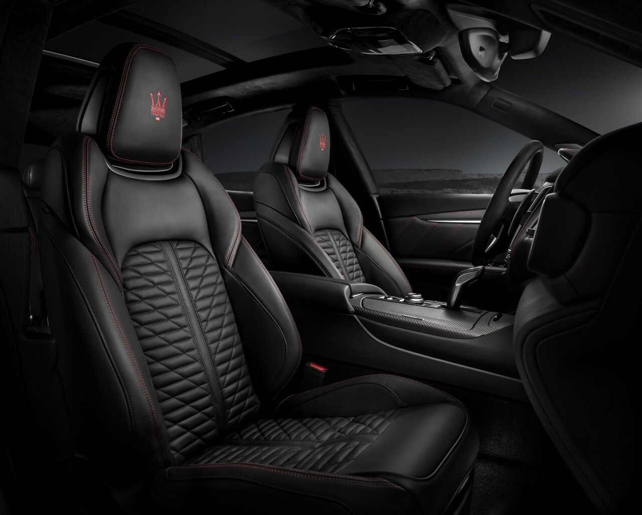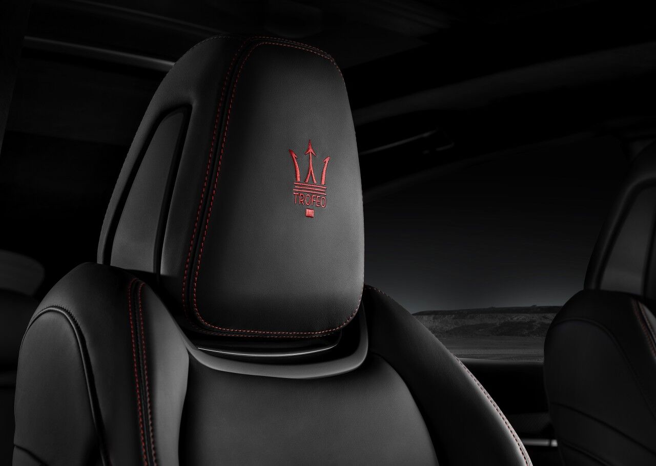 El interior del Maserati Levante Trofeo cuenta con unos asientos deportivos tapizados en cuero, con costuras en contraste y el logotipo del modelo bordado en los reposacabezas. No pueden faltar aquí las molduras de fibra de carbono, los gráficos específicos o las insignias con el logotipo ‘Trofeo’. Los elementos más destacados son un reloj Maserati y un sistema de sonido Bowers & Wilkins de 1.280 vatios y 17 altavoces.