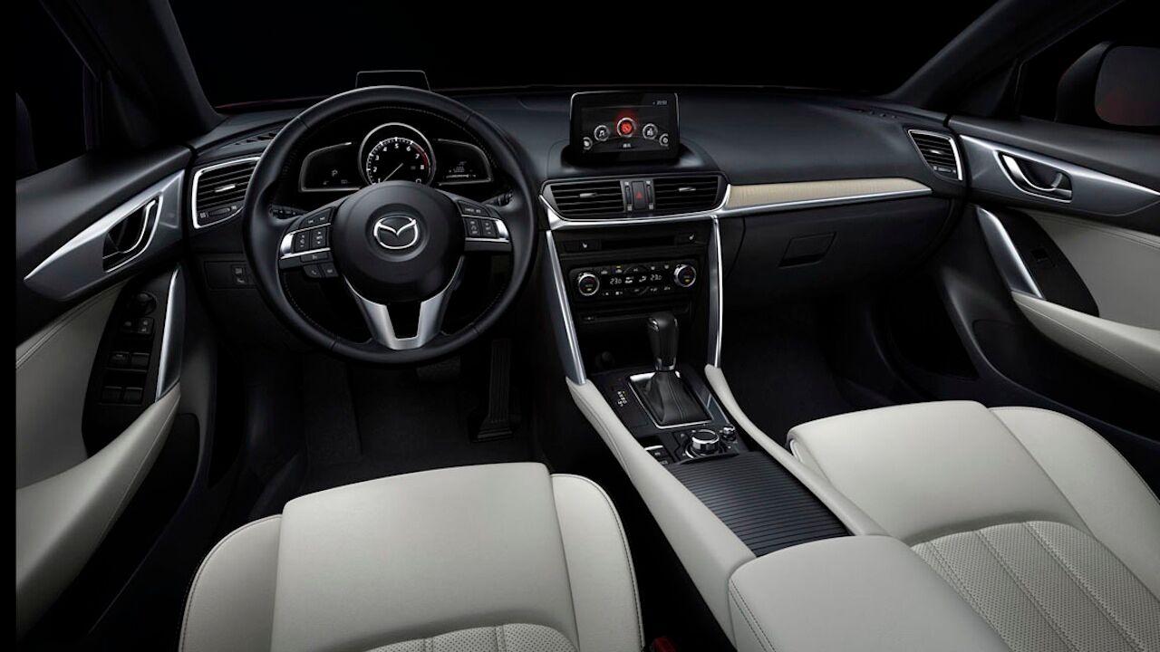 A pesar de su imagen deportiva, los 2.700 mm de distancia entre ejes garantizan un espacio bastante grande en su habitáculo, que como el exterior, sigye las pautas del diseño Kodo en sus formas. No hay muchas diferencias con otros modelos de la marca como el Mazda CX-5, con una pantalla central de 7 pulgadas flotante en el salpicadero, desde la que se manejan diversos sistemas de información y entretenimiento (puede controilarse también desde un mando giratorio) junto a la palanca de cambios, un espacio bastante liberado al contar con freno de mano eléctrico.