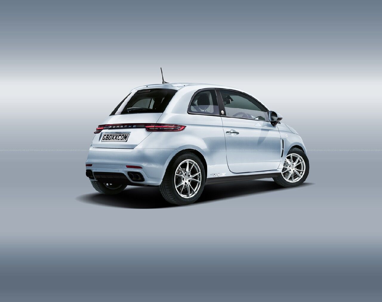 Porsche, a pesar de tener una gama bastante amplia, tampoco se plantea la producción de un utilitario. Pero para imaginarlo se han tomado los faros delanteros del Porsche Panamera, las llantas y tomas de aire del Porsche Boxster y la zaga del Porsche Cayenne, con esos pilotos unidos por un listón negro. Llama la atención que no haya elementos del modelo más carismático de la marca de Stuttgart, el Porsche 911. La base vuelve a ser el Fiat 500.