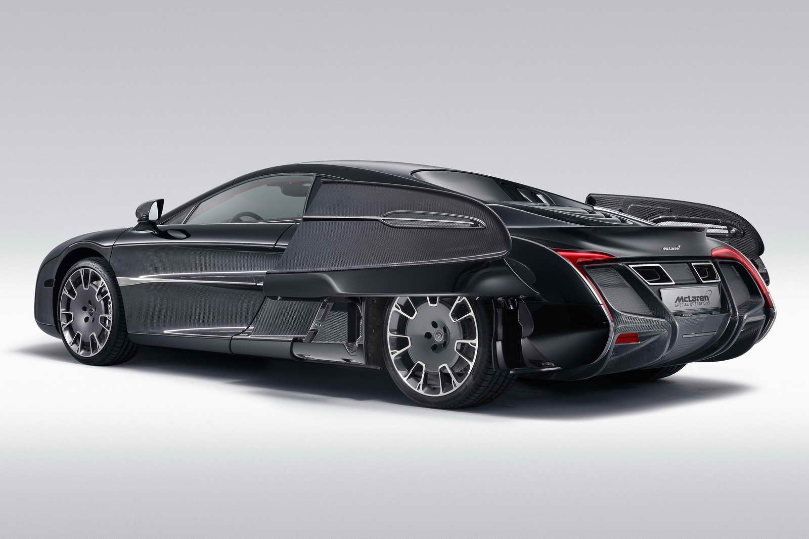 Quizá una de las características de su diseño más llamativas son las ruedas traseras carenadas. Los paneles de fibra de carbono que los cubren basculan para poder tener acceso a las mismas en caso de necesidad. Las puertas también se han desarrollado específicamente para el McLaren X-1, manteniendo incluso el sistema de apertura mediante bisagras dobles. El techo, como no podía ser de otra forma, también es nuevo.